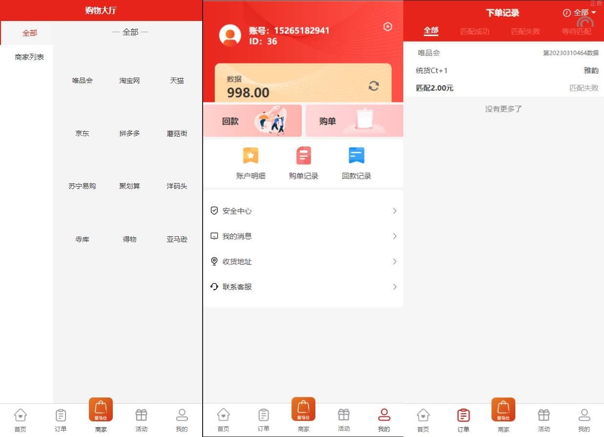 多套uniapp伪商城刷單系统源码/订单自动匹配系统/带预设/代理后台