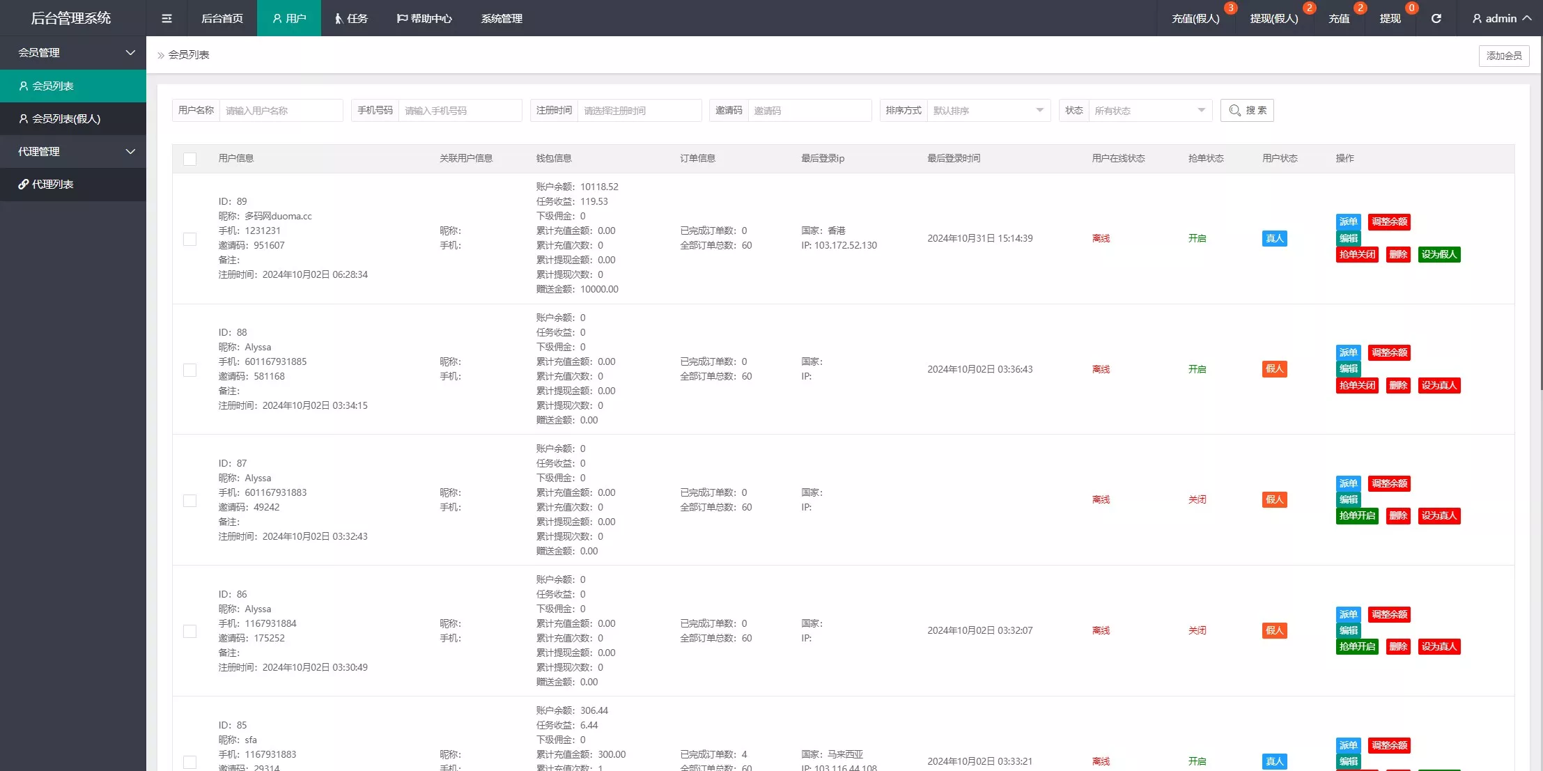 全新定制国际快杀盘搶單系統,亚马逊60关卡任务资金盘,前端vue,后端thinkphp