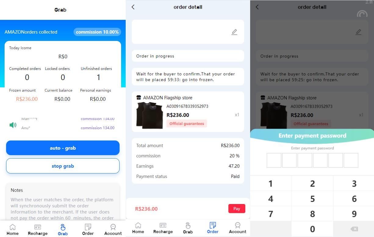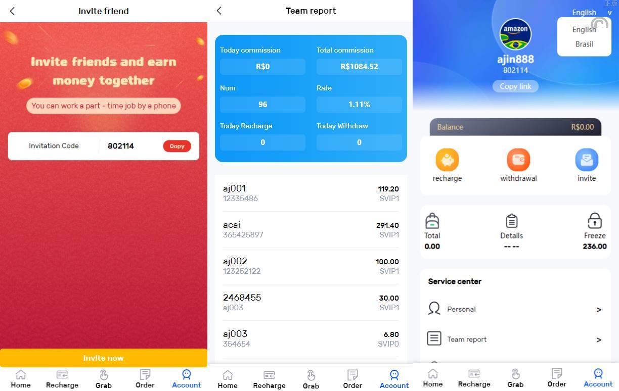 亲测UI多國語言亚马逊抢单刷單系统/订单自动匹配系统 从新二开前端UI,解决原本手机端加载慢的问题 前端只保留英语和葡萄牙语 系统附带单独的代理后台,邀请功能-可自建团队,获得更多佣金,升级会员等 自动抓取亚马逊订单,可以停止抢订单-抓取订单做任务 源码是开源,无加密,无后门(支持任何二开功能)