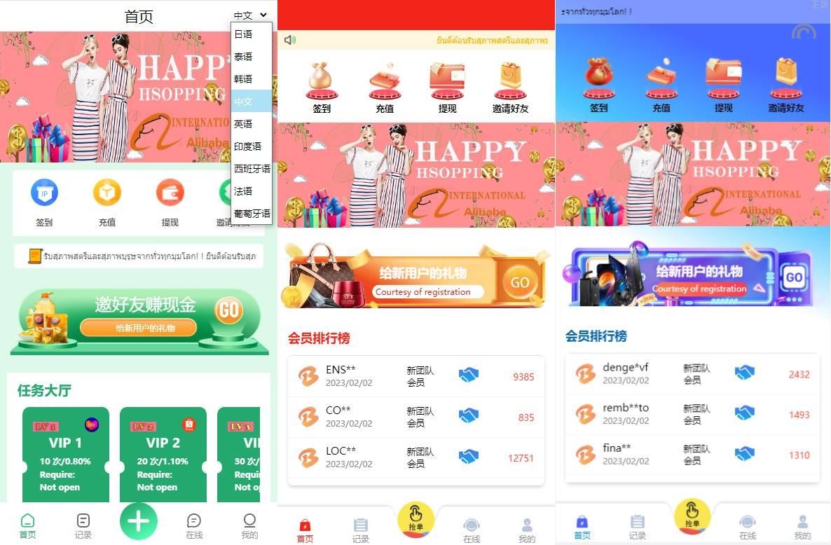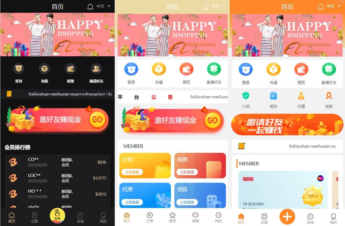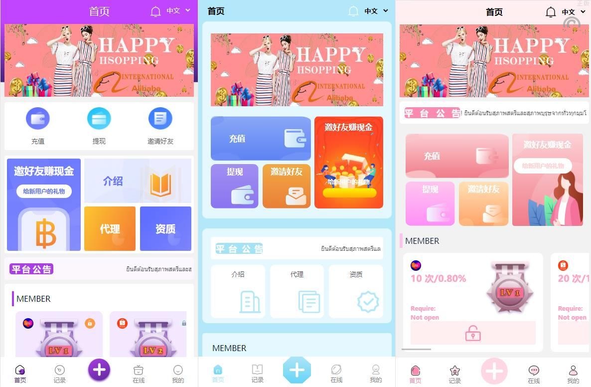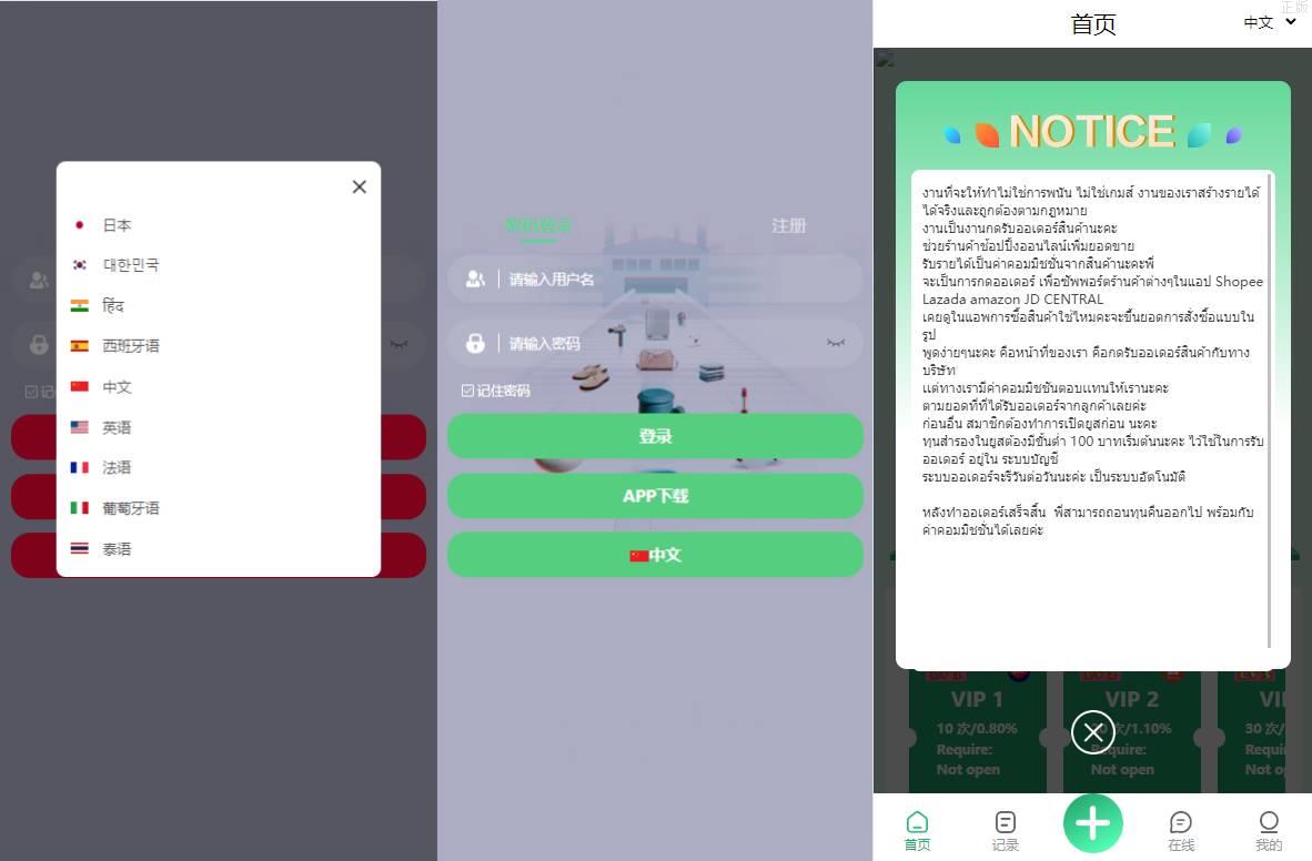 九套UI可切换特惠抢单刷單系统/订单自动匹配系统/分组杀/连单控 更新5套ui 为紫色 粉色 青色,其他的为红色,蓝色,黄色,黑色,绿色,橙色, 前端9种语言后台任意设置开关,前端九套UI后台任意切换 功能支持分组、百分比、固定值、连单设置、充值彩金等众多功能 支持定制其它UI