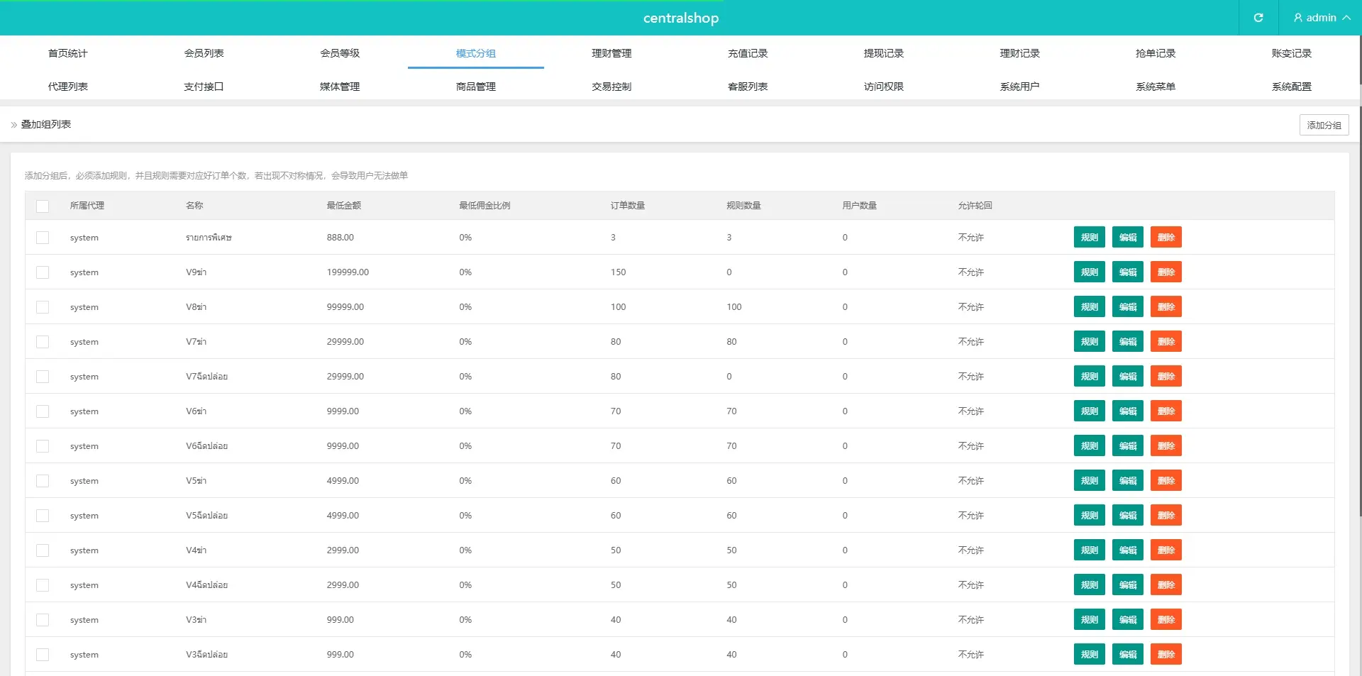 系统功能:支持叠加组,权限代理,打针,分组等功能
