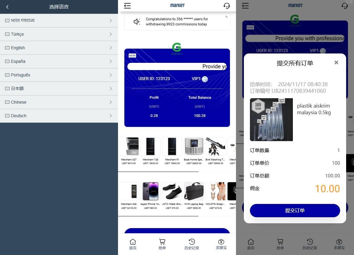 定制UI重构特惠抢单刷單系统/多國語言連單卡單/刷單源码