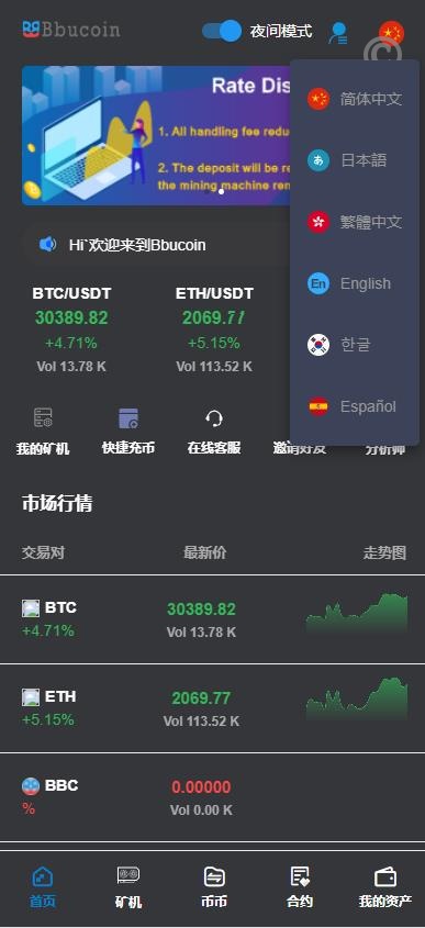 【Bbank交易所】多國語言交易所二开平台币/矿机系统/分析师/币币合约交易 也是基于bbank二开的ui,矿机系统,分析师跟单引流,全开源 交易所 全开源 分析师跟单 区块链 区块链交易所 多语言交易所 币币交易 矿机挖矿 矿机系统 秒合约 虚拟币