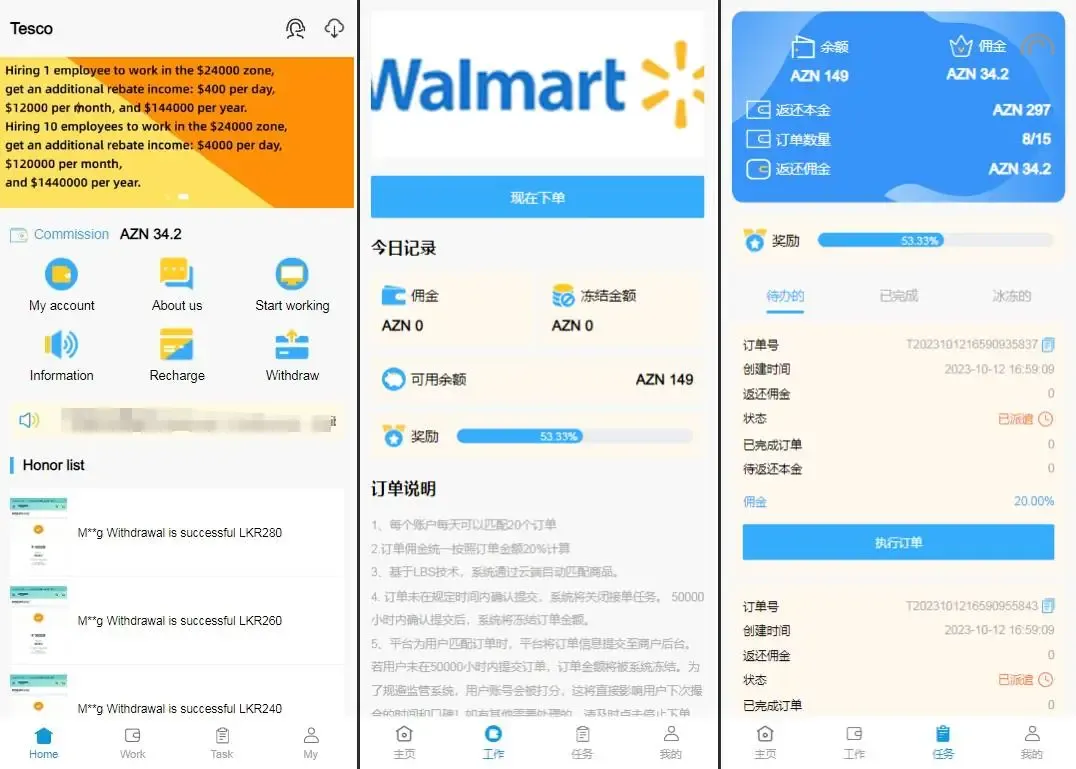 Tesco特惠多國語言刷單任务商城源码/指派订单/任务叠加模式+自选模式+余额倍率模式+余额本金模式/一键分配用户预设模板/完整代理端