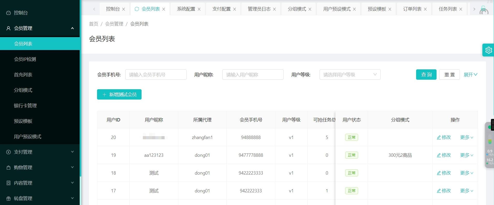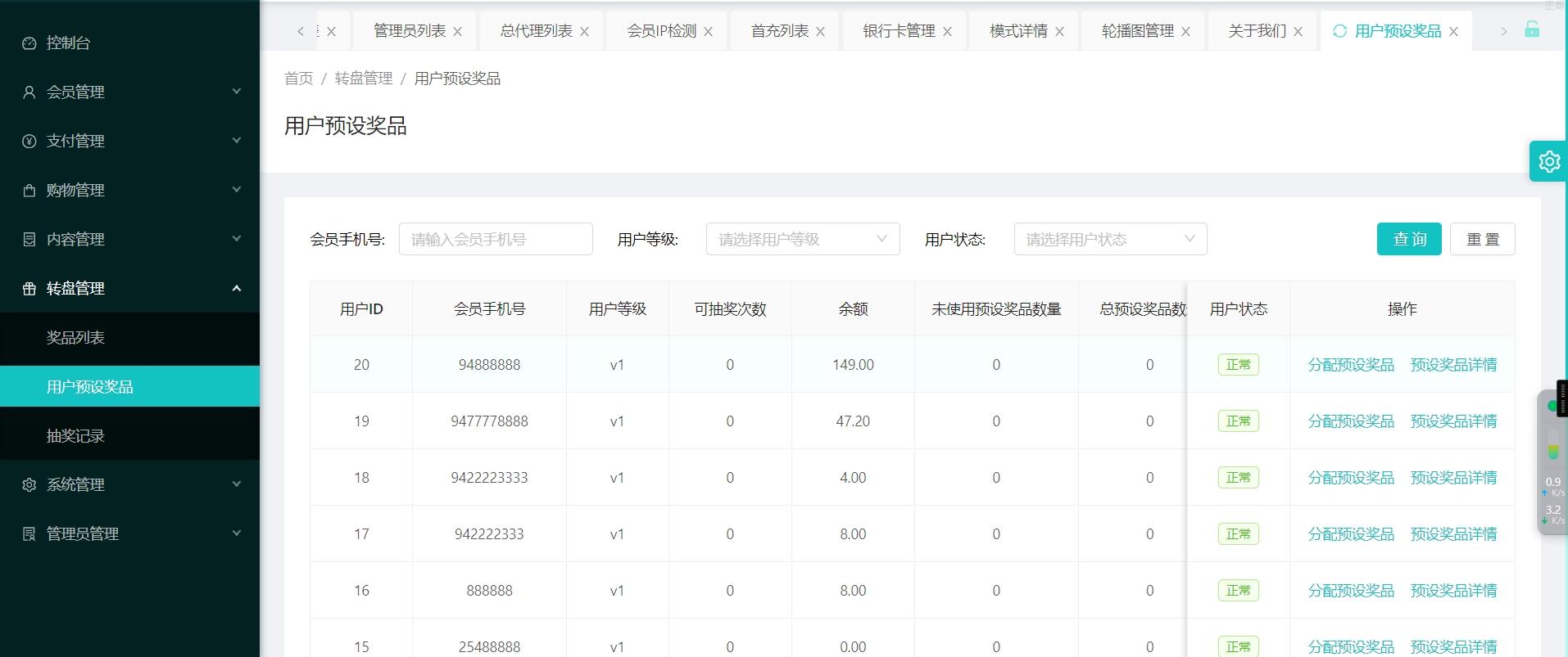 代理端也是vue编译后的,非常完整的代理端,后台大转盘也有预设奖品的功能