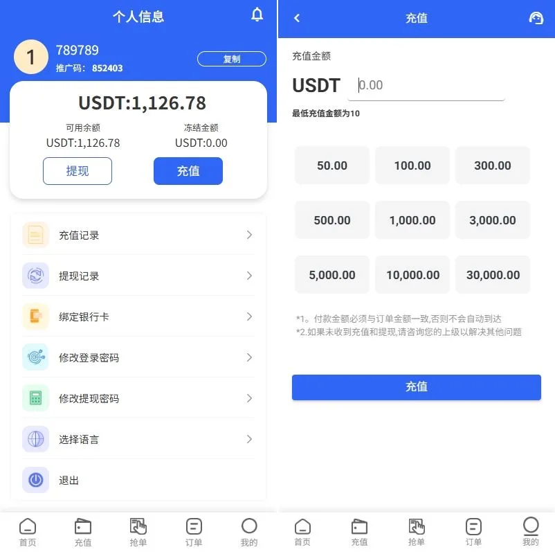 【特惠多國語言刷單源码】特惠抢单刷單系统/手动派单/爆单卡单/多國語言刷單前端VUE开发后端PHP