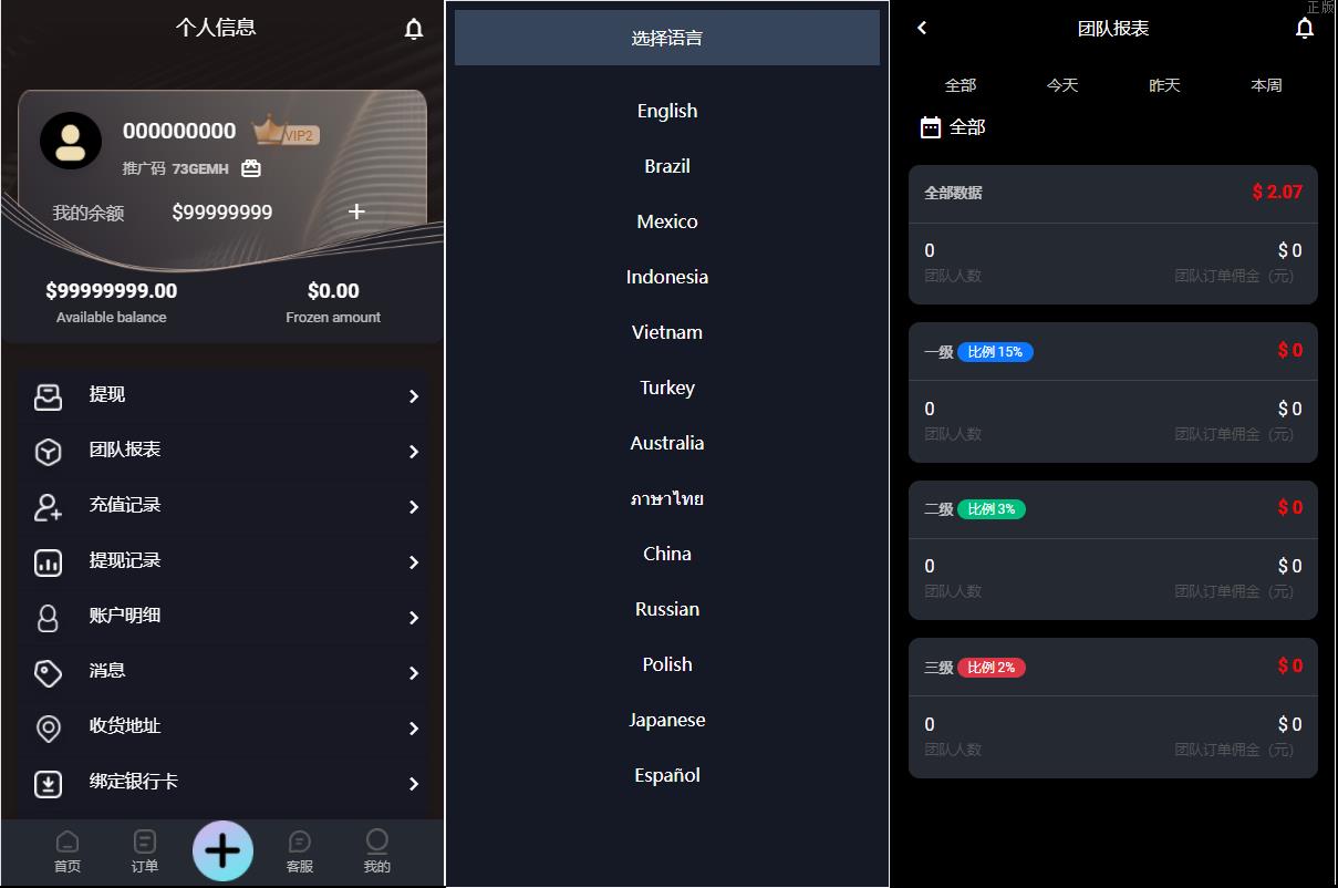 13国语言抢单源码,任务悬赏抢单源码,支持做单 打针 叠加多模式设置等等!全开源 支持多国语言切换,已对接多国几十种支付接口!时区设置,代理多客服切换,余额宝 多分销 分佣模式,体验金设置,级别任务设置 等等更多火热功能! 系统全开源 ,搭建简单 客户独家定制二开的一个版本。