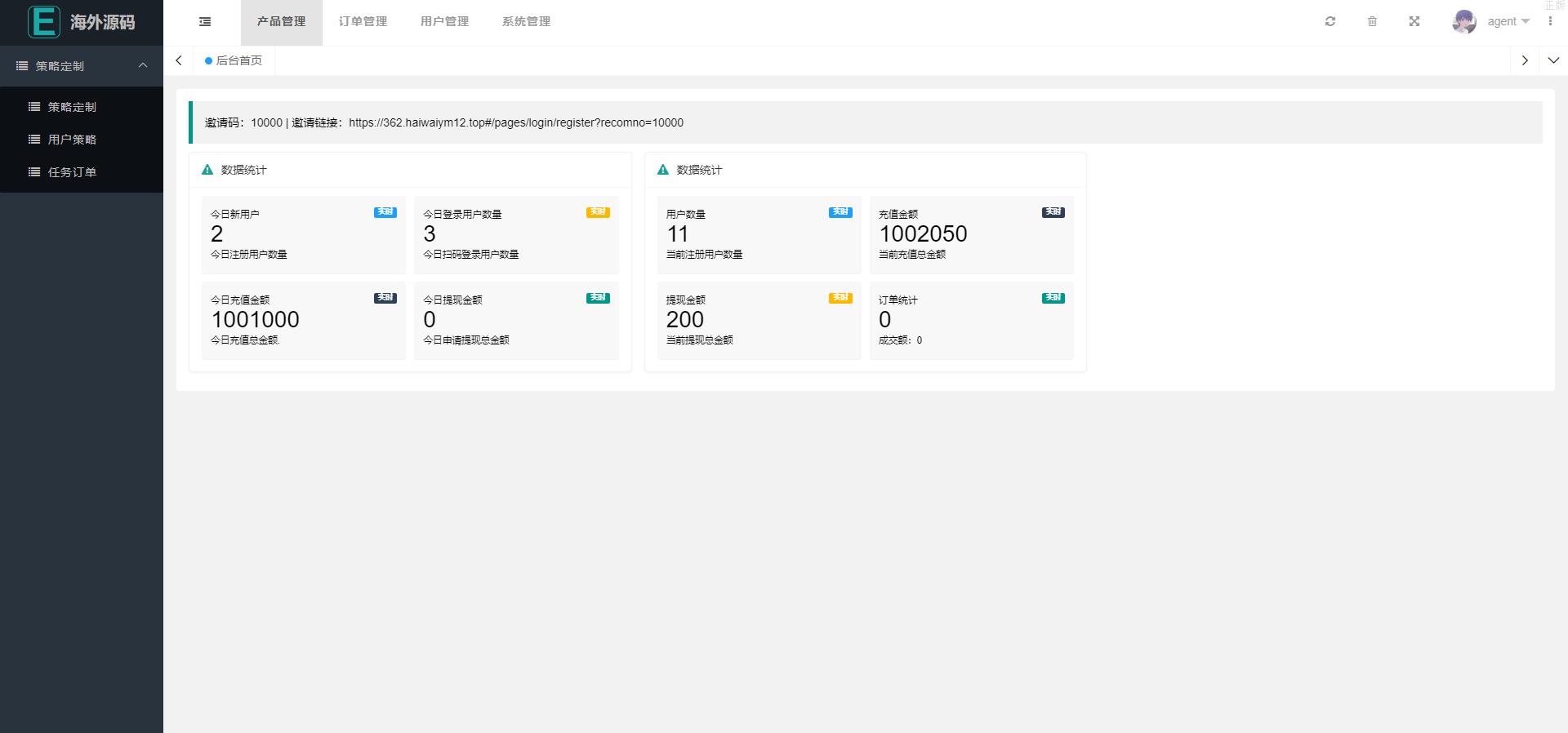 可添加用户策略,注册送礼等功能