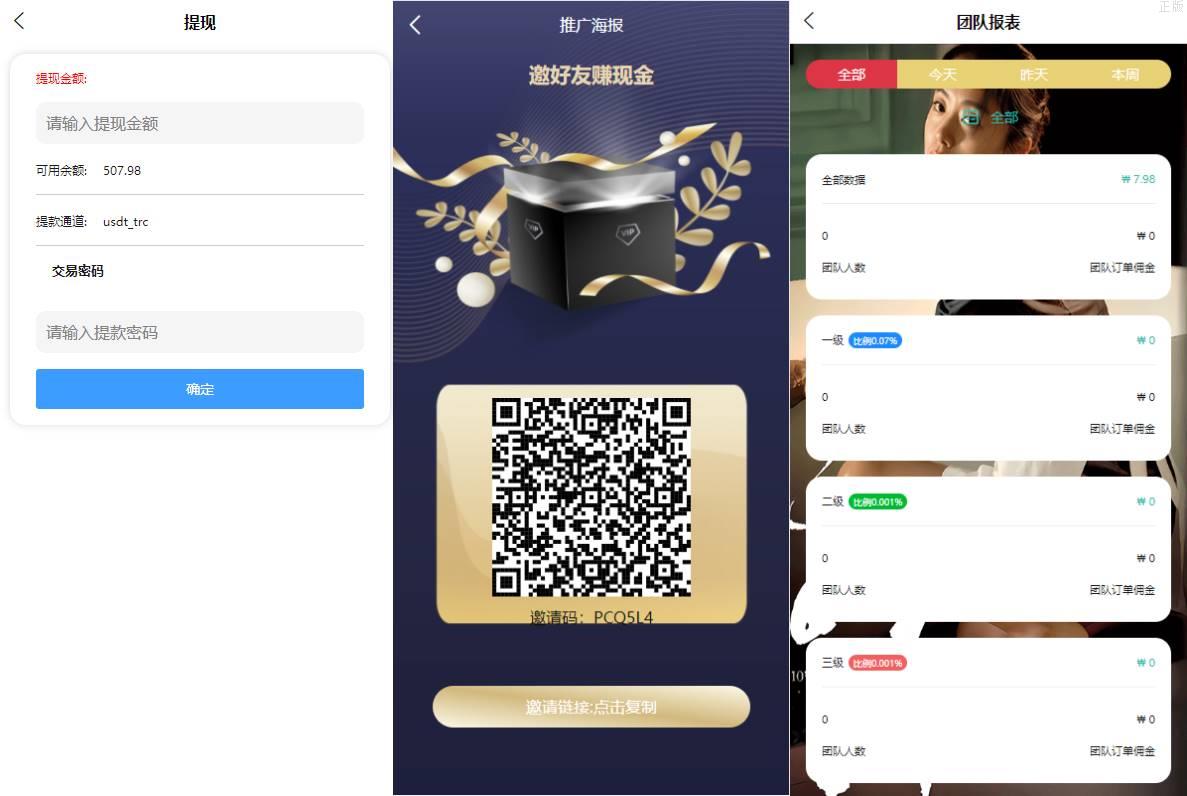 3、每个代理有自己专门的收款地址和客服(如果客户通过a代理旗下的业务员的邀请码注册,充值时展示的收款地址则是a代理的收款地址,客服亦是如此,如果不属于代理,则展示总后台的充值收款地址以及客服链接)