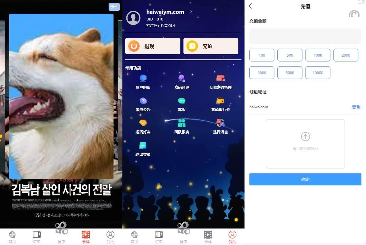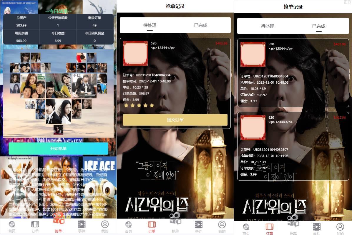 特惠多國語言电影抢单刷單系统/卡单/业务员/代理/前端uinapp