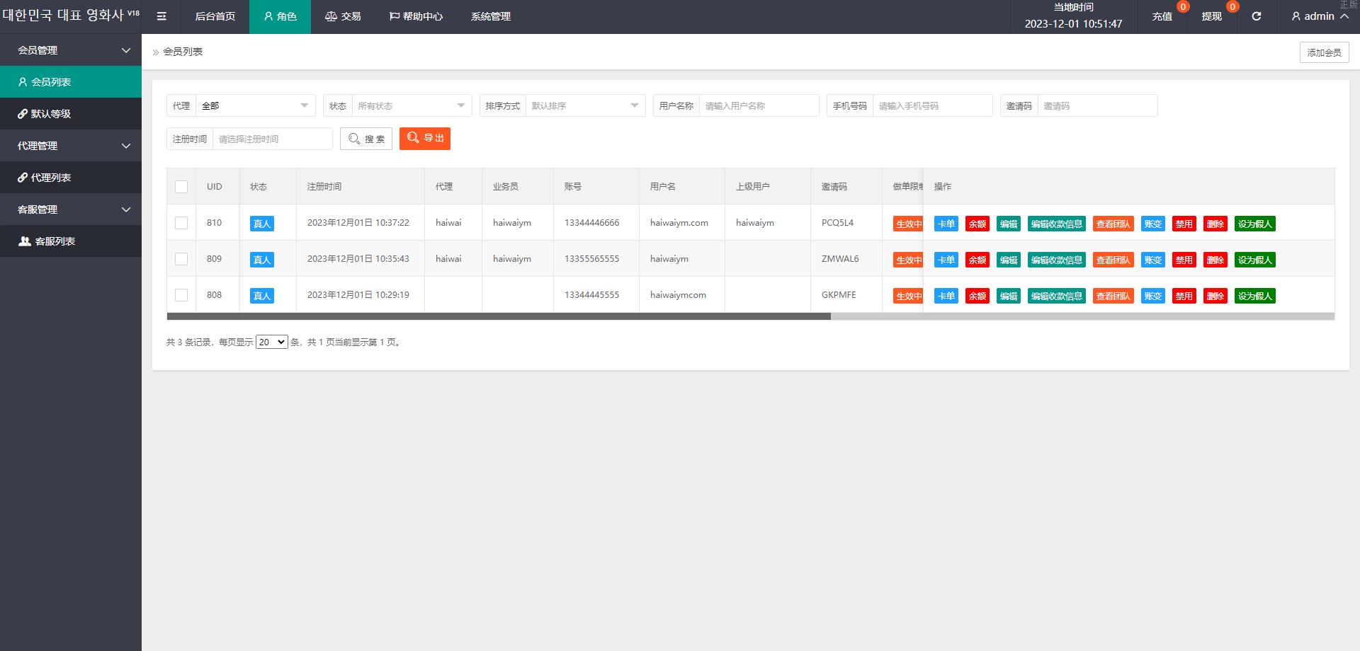 2、增加代理、业务员后台、分别有独自的域名绑定