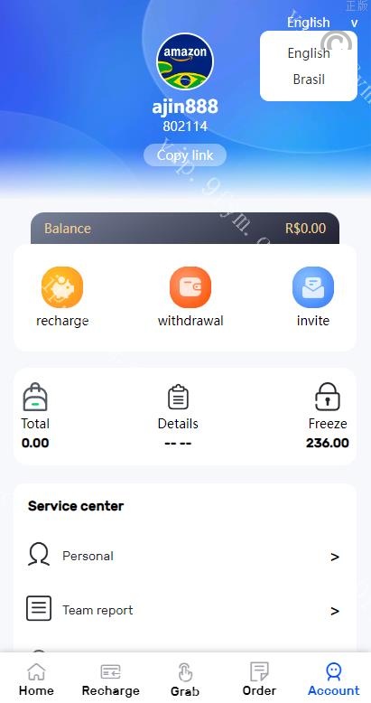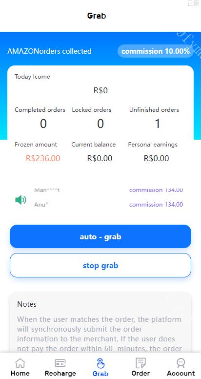 亲测UI多國語言亚马逊抢单刷單系统/订单自动匹配系统 从新二开前端UI,解决原本手机端加载慢的问题 前端只保留英语和葡萄牙语 系统附带单独的代理后台,邀请功能-可自建团队,获得更多佣金,升级会员等 自动抓取亚马逊订单,可以停止抢订单-抓取订单做任务 源码是开源,无加密,无后门(支持任何二开功能) 有原版也有修复版本 编号:683 付费精品源码