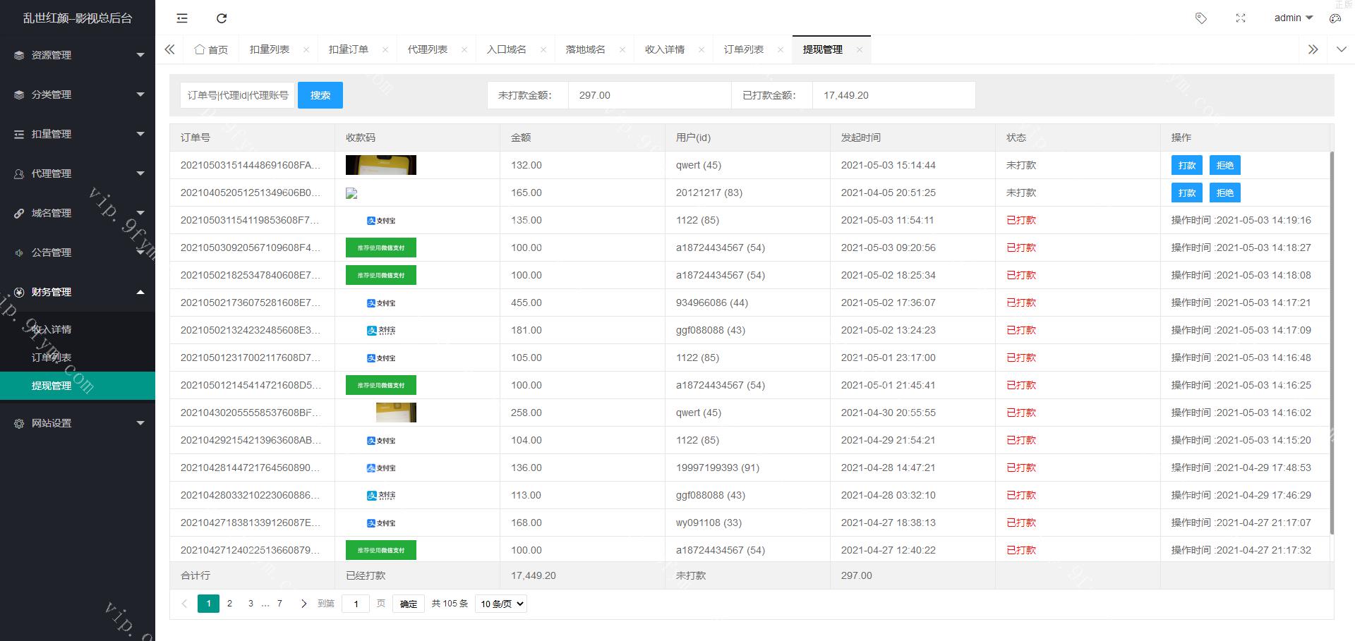 2.0打赏系统/视频打赏/影视知识付费/超级防封 新系统特性: 1、功能、限制设定全部在后台搞定,完全不用改代码,就是不懂技术的人都能用; 2、防封,附带赠送防封插件,自动跳过已红域名; 3、系统自带包天、包周、包月,不用改代码,直接后台设置; 4、系统自带市面上常用的支付接口,一键配置,也可以增加新接口; 5、一键生成总推广链接,每次生成链接都不一样,防止短链被墙; 6、采用伪文件+参数加密等方式保护系统文件安全不被篡改 编号:621 付费精品源码