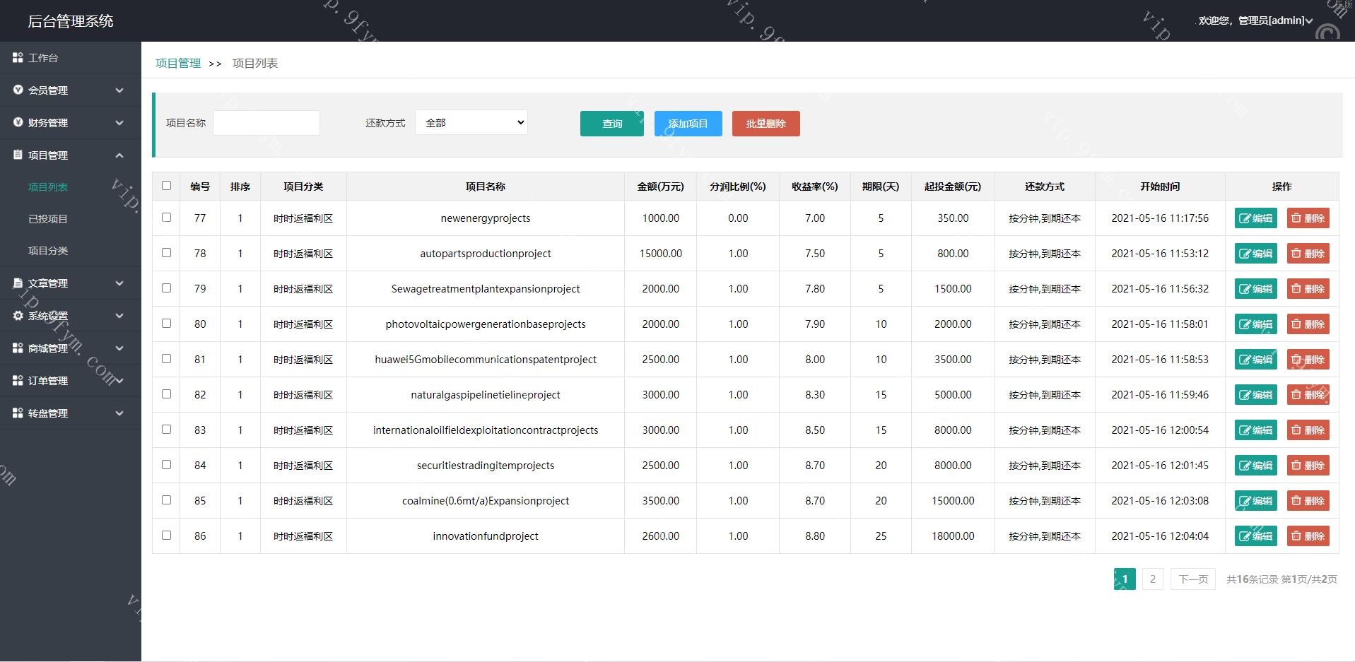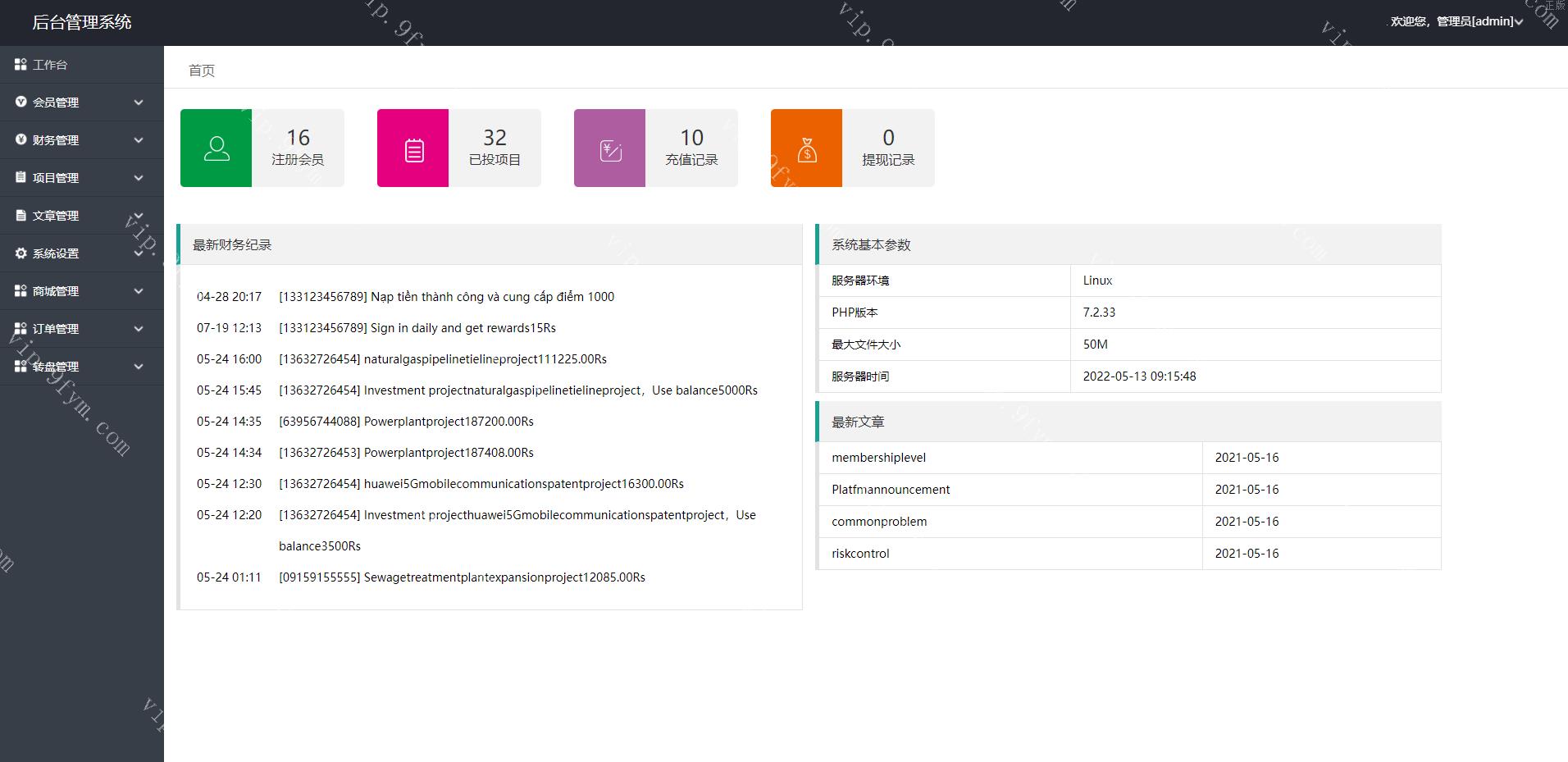 二开英文版p2p投资理财源码/众筹投资分红系统 英文版p2p投资理财源码/众筹投资分红系统 目前为单英文版,需要加语言可以定制 多返息方式:自然日 脚本自动结算 新增加收益分成 团队一条线明细 三级收益分成 积分商城 优惠券 幸运大转盘可以帮助运营者增加互动性 后台直接设置网站信息等,设置对于操作权限!文件齐全 编号:1344 付费精品源码
