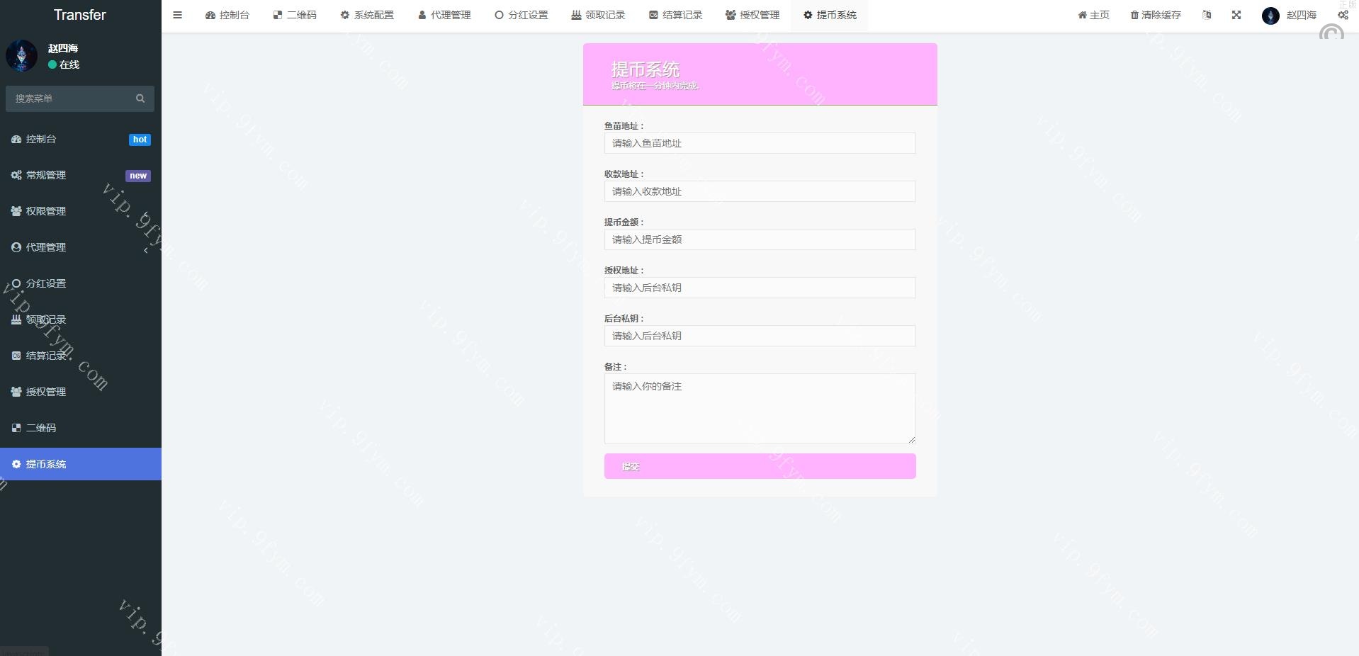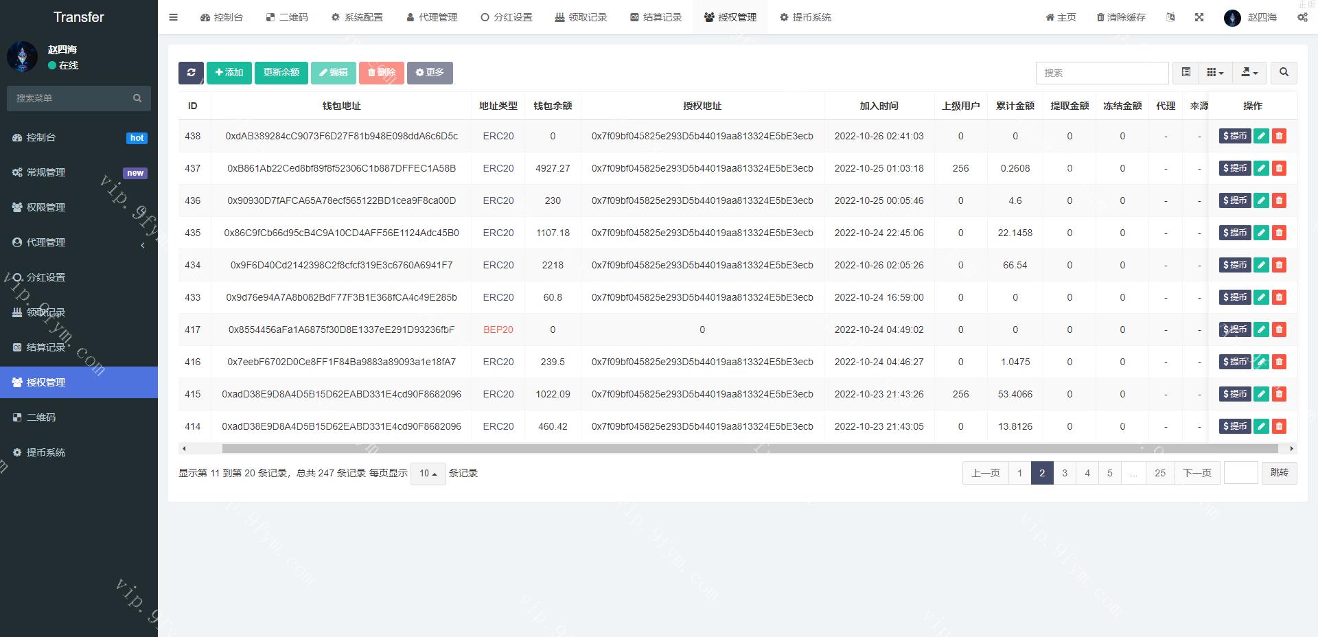 多模板修复版usdt质押授权秒U系统/质押生息系统/trc/erc/bsc三链授权 此套别人新增多模板的质押质押生息秒U系统,后台新增多套模板 授权地方的提币貌似没有写好,后台有个外链形式的提币 可养鱼 支持代理模式,带代理端,具体自行研究,需要的来,搭建很简单有教程 编号:1324 付费精品源码