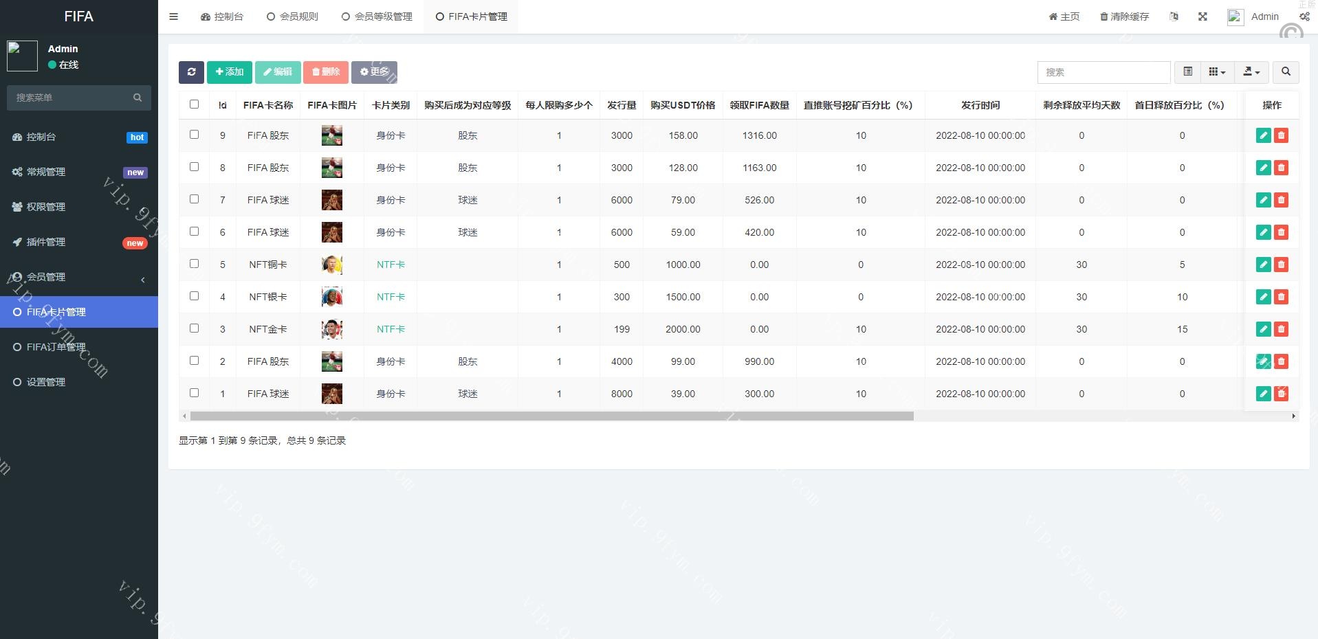 世界杯双语区块链理财/足球球星NFT购买/nft藏品投资 一款以世界杯球星开发的nft藏品购买系统,系统是dapp源码可直接链接钱包购买 源码全开源前端可换任意藏品,前端uinapp开发,后端是fa stadmin框架,接口是nodejs,已失效 编号:1268 付费精品源码