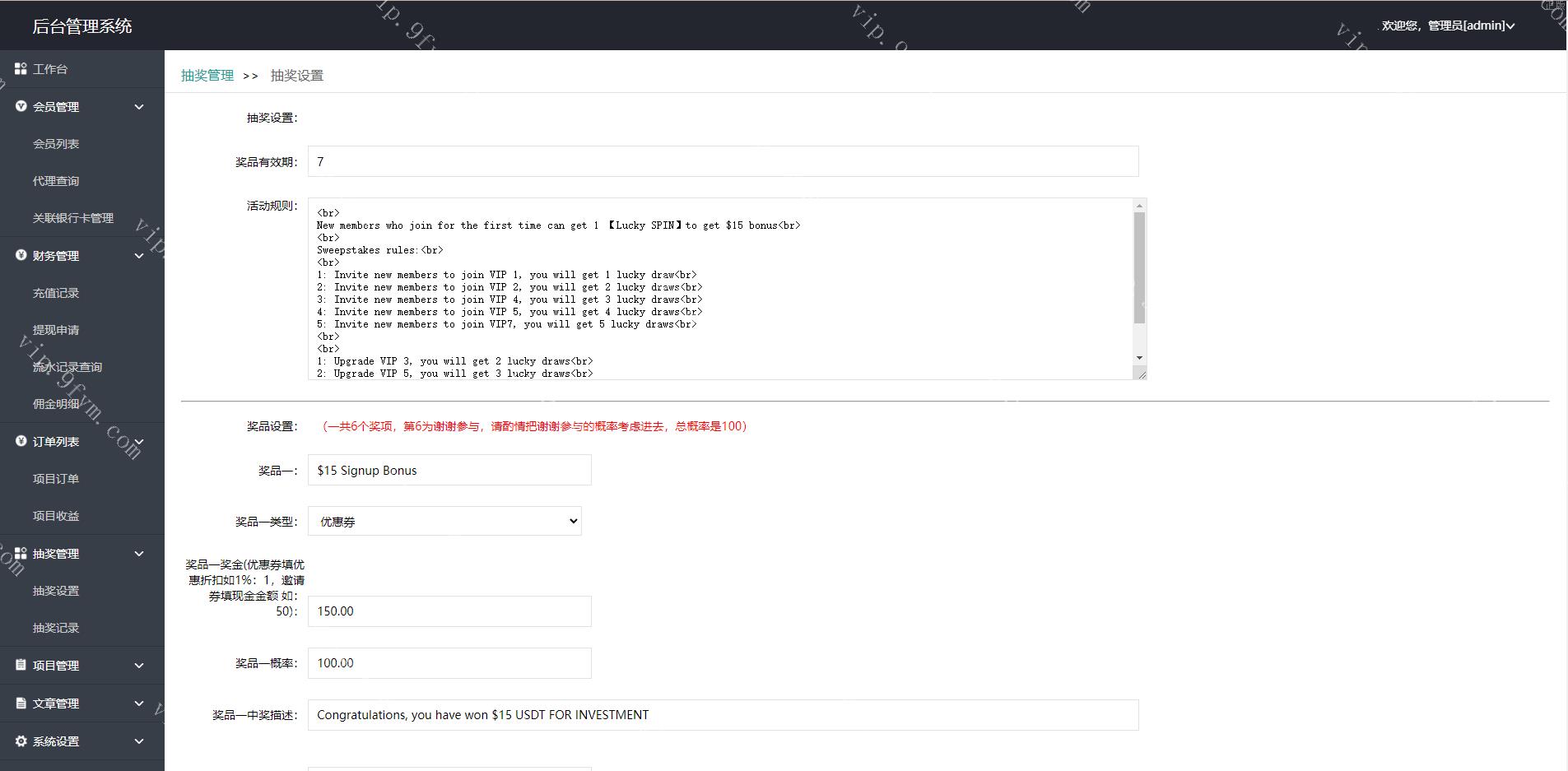 特惠开源代码新UI投资理财系统/投资理财源码 1.转盘:一共6个奖项,第6为谢谢参与,谢谢参与的概率考虑进去,总概率是100 , 2.代理后台团队查询 3.每天返利 ,到期还本,附加脚本。 4.邀请投资1级分佣 邀请投资2级分佣 邀请投资3级分佣,操作简单 编号:1229 付费精品源码