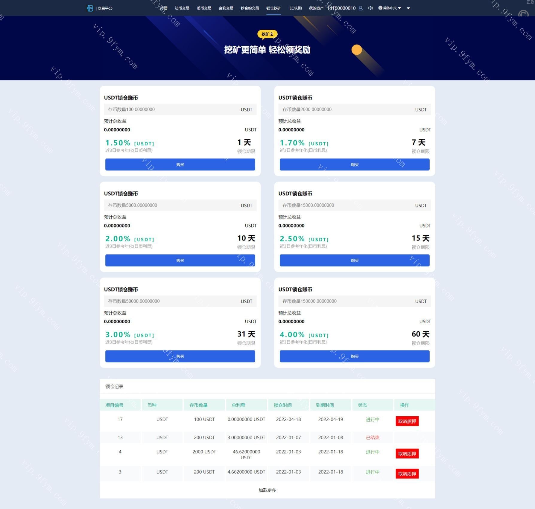 秒合约多國語言交易所/锁仓挖矿/IEO认购/币币交易/法币交易/杠杆交易