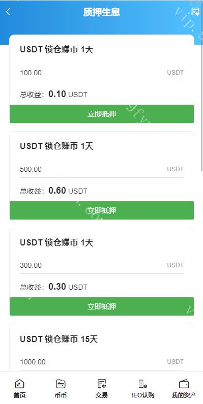 全新二开交易所/后台预生成K线/质押生息/IEO认购/币币合约交易/一般 全新二开交易所/后台预生成K线/质押生息/IEO认购/币币合约交易 后台全新开发而成,UI全新定制的,K线全新后台生成,具体自行看图 VUE源码,需要单独购买 编号:993 付费精品源码