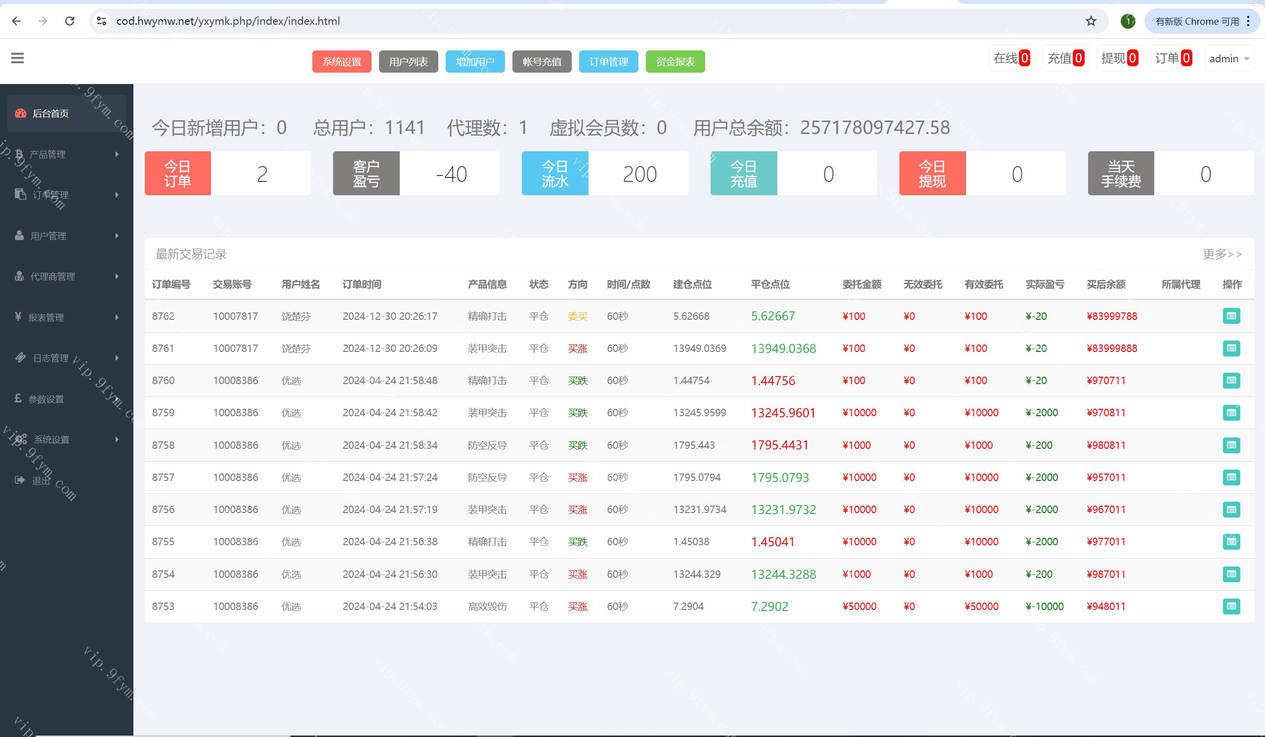 k线、结算都正常,控制也是很OK的,后台产品回收站里面有之前的产品数据,比如区块链、期货、外汇等产品