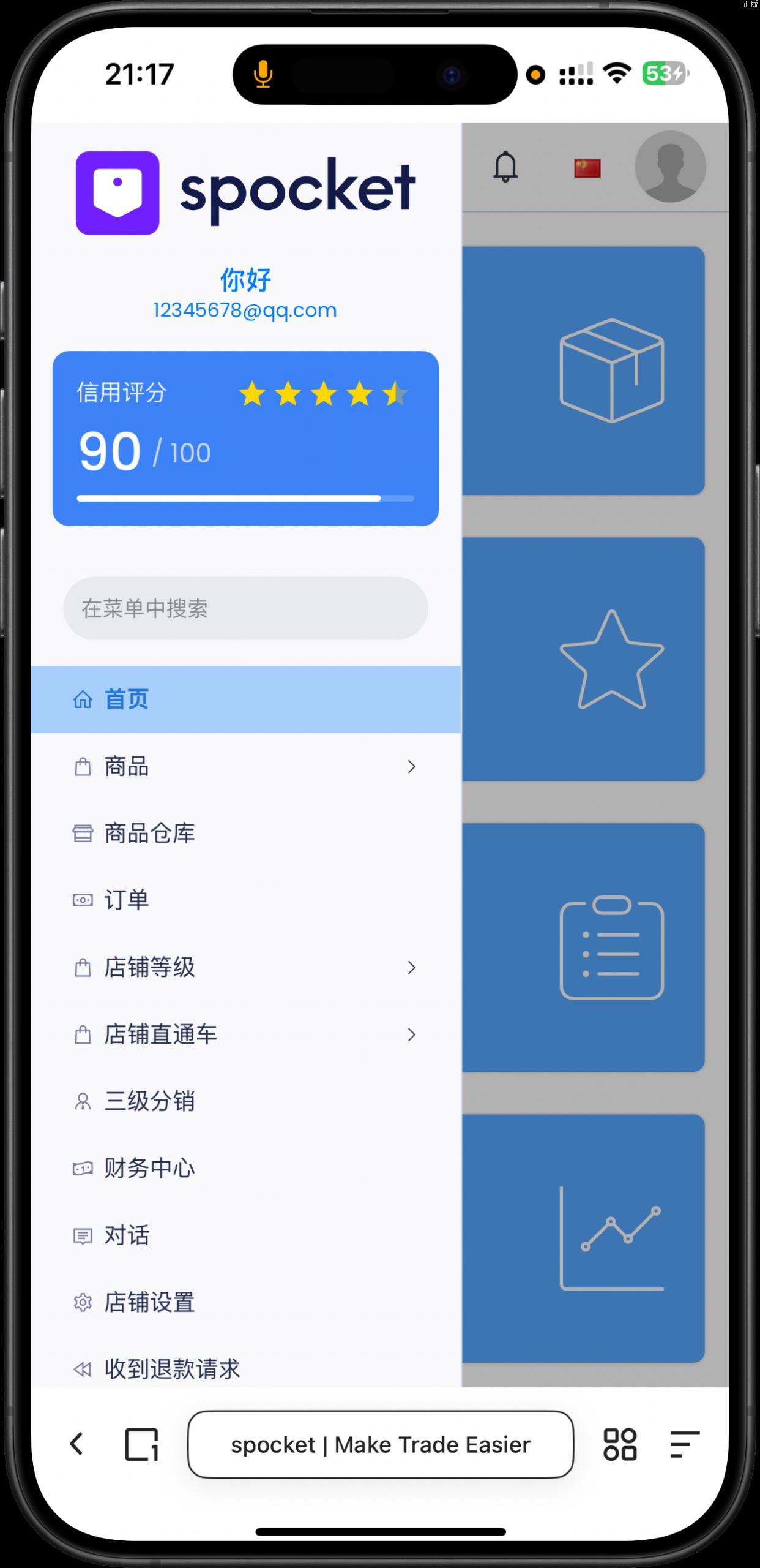 – 店铺后台显示当前信誉分