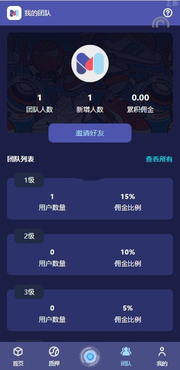 11、支持三级分销,下级质押上级能获得对应百分比奖励