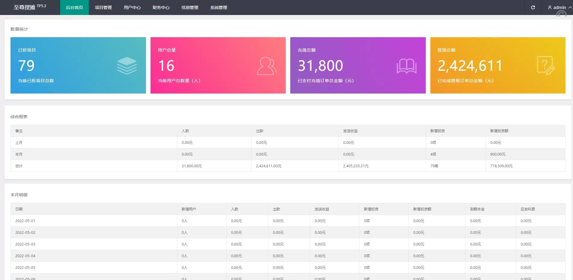 💰 投资分红系统:智能计算用户投资回报,按周期发放分红,确保稳定收益