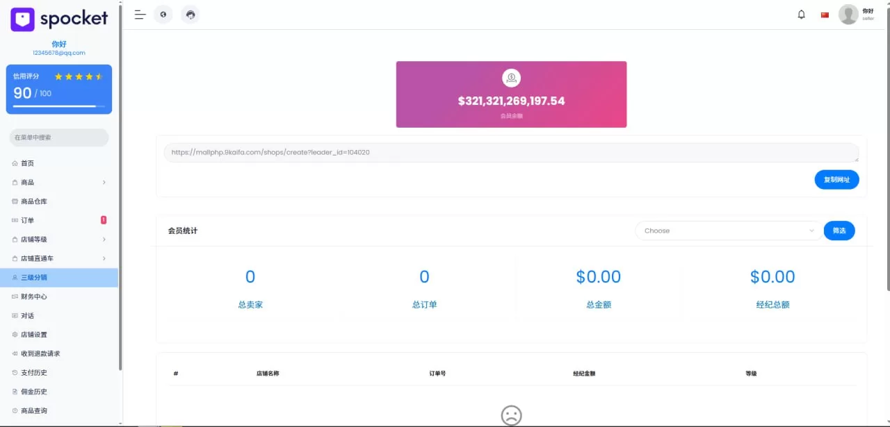 店铺佣金配置如一级佣金比例 二级佣金比例等 以此类推