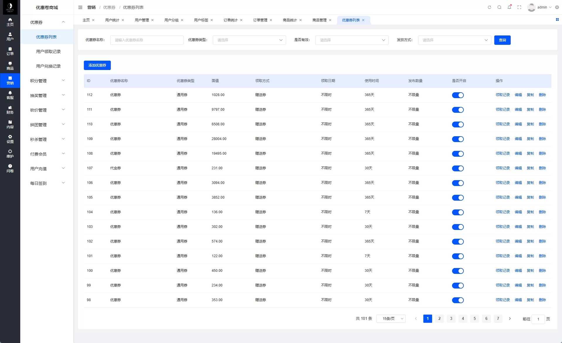 ✅ 优惠券商城:用户可以浏览、领取、兑换各种优惠券,支持商家发布优惠活动。