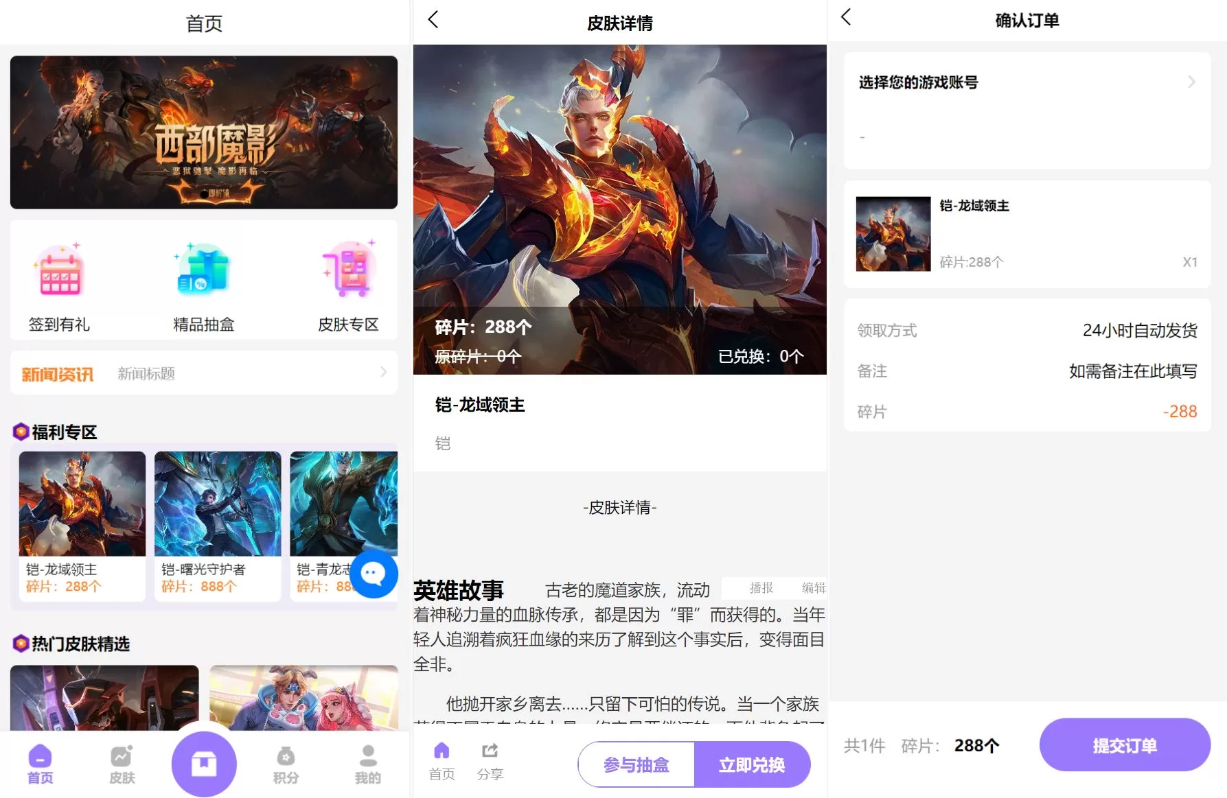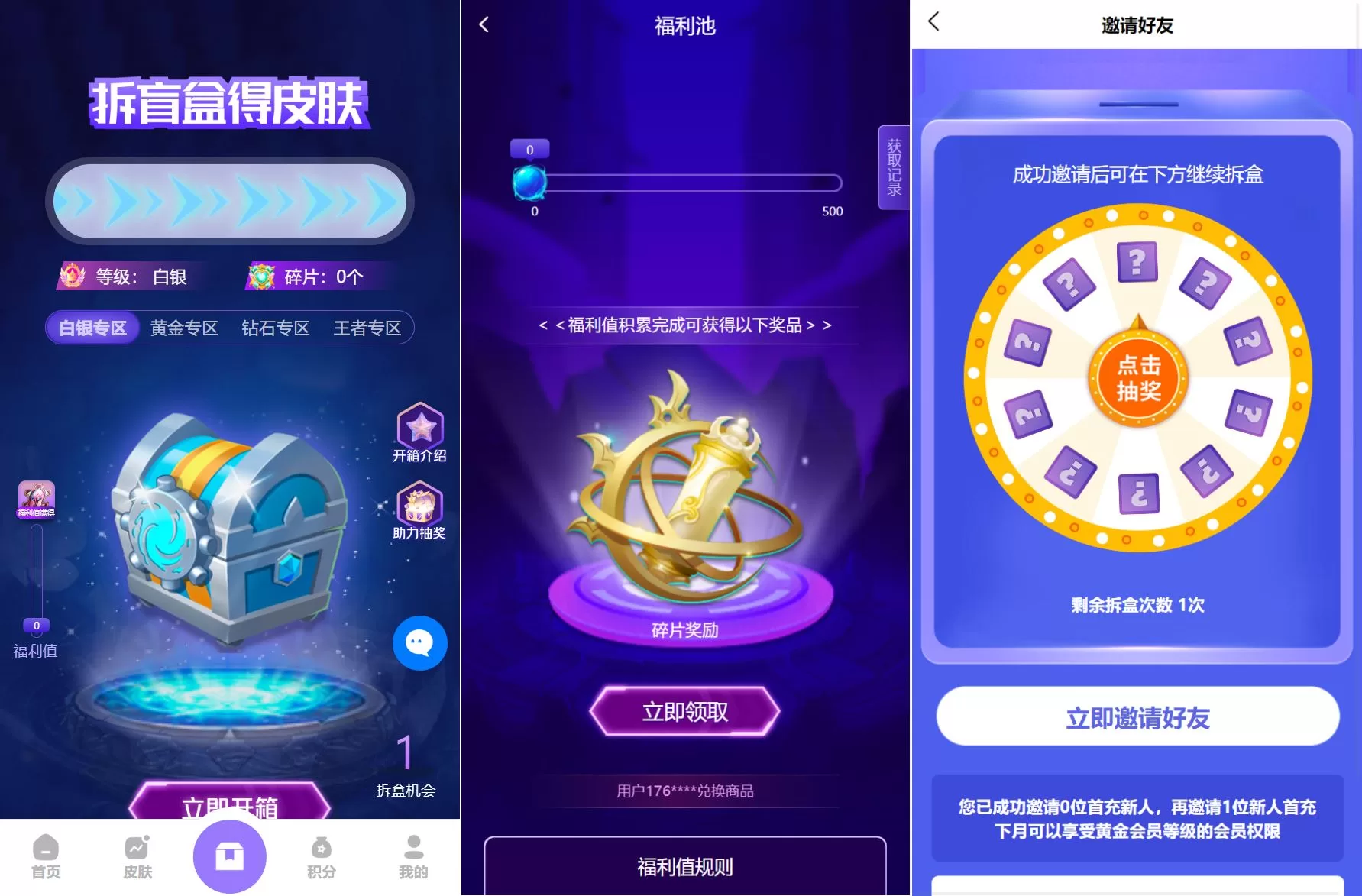 二开版王者荣耀皮肤抽奖系统/游戏皮肤盲盒/盲盒商城抽奖盲盒/前端UNIAPP