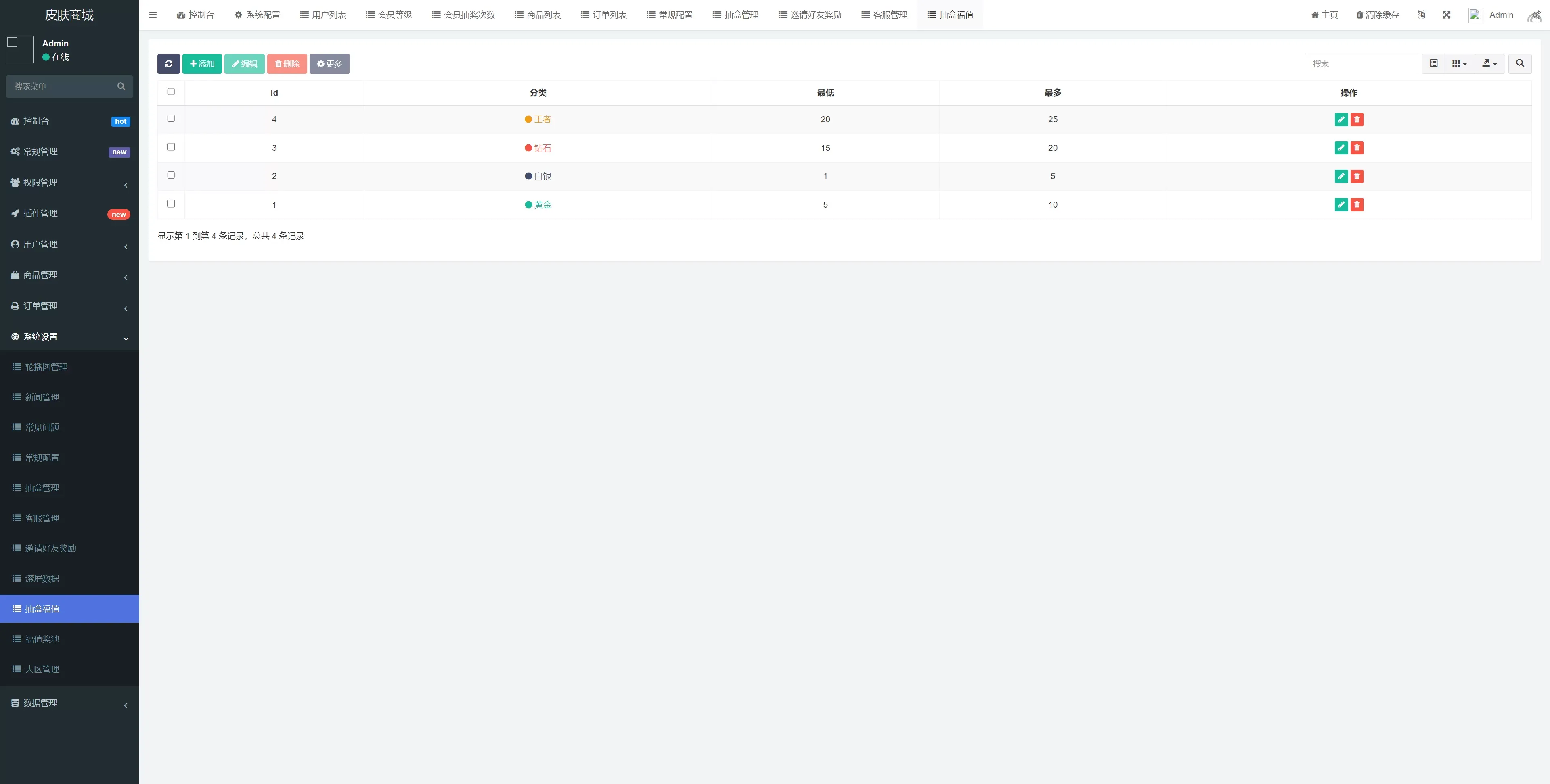此源码为全新二开的,前端主打游戏皮肤抽奖模式