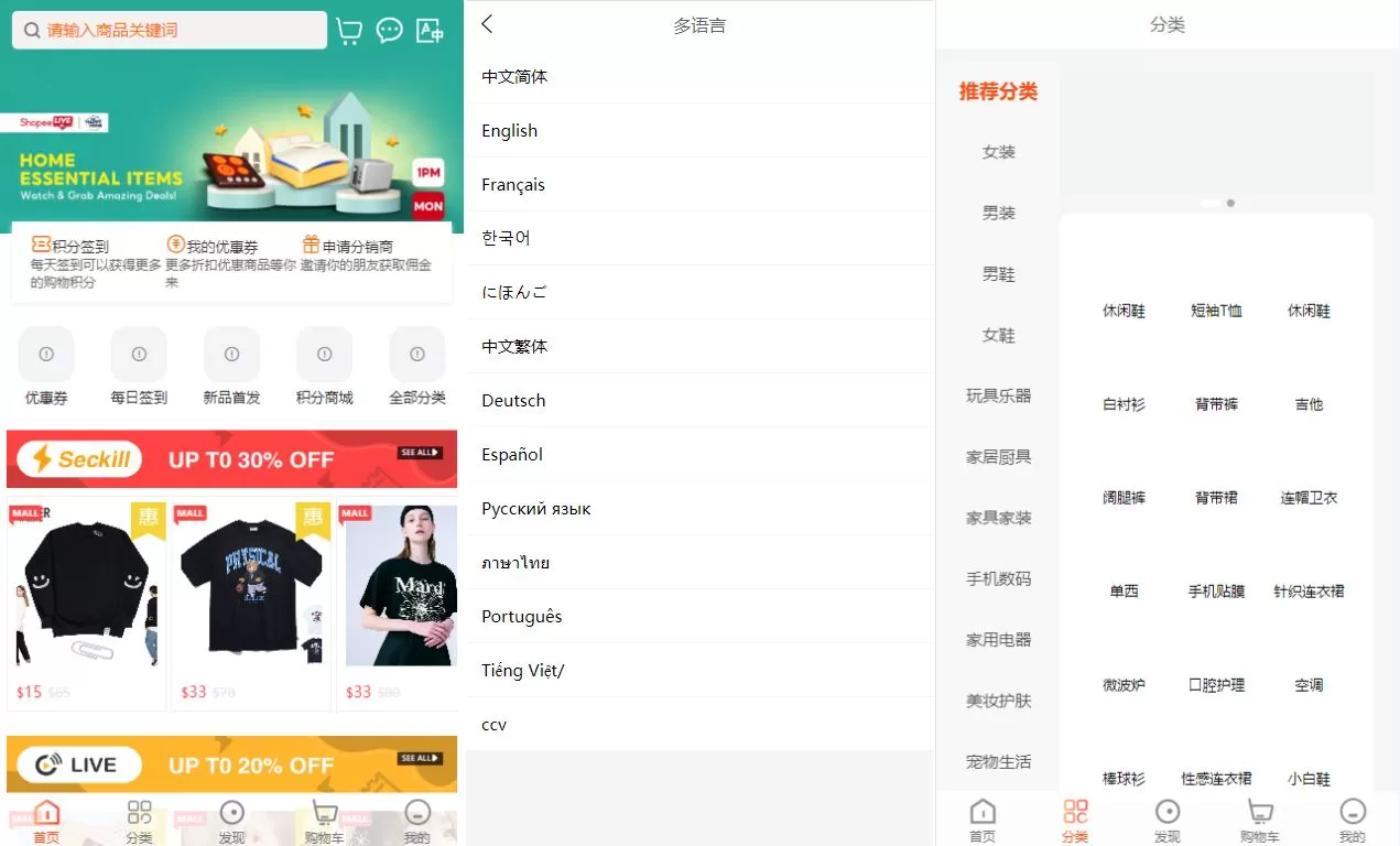 系统独立开发,系统流畅;前后端全开源、无加密;商城集短视频、直播、社交、分销、积分、多國語言、国际支付、国际物流等多功能一体;