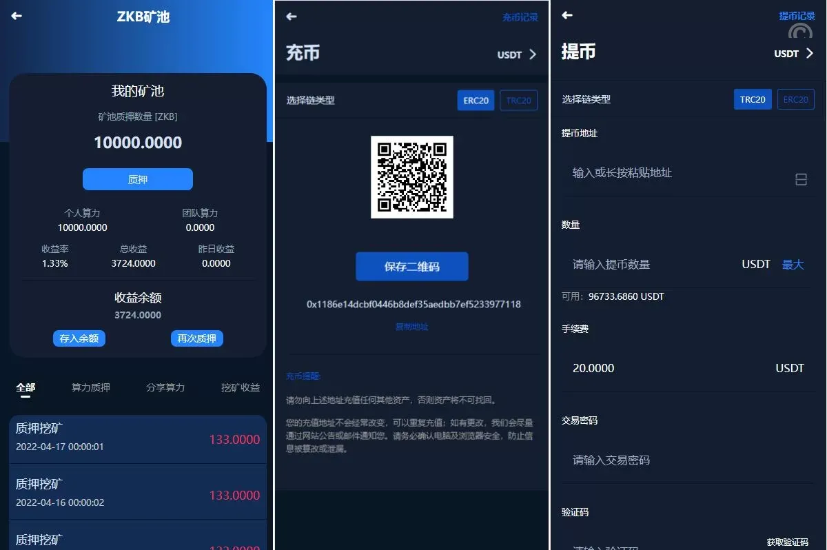 - 新增 质押挖矿 等功能,增强交易所盈利模式