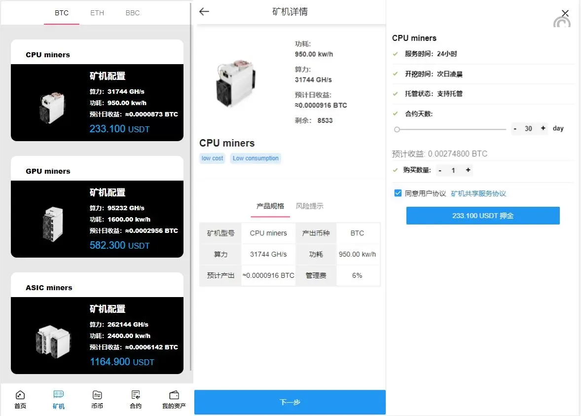3️⃣ 矿机系统:用户可购买矿机,享受云挖矿收益