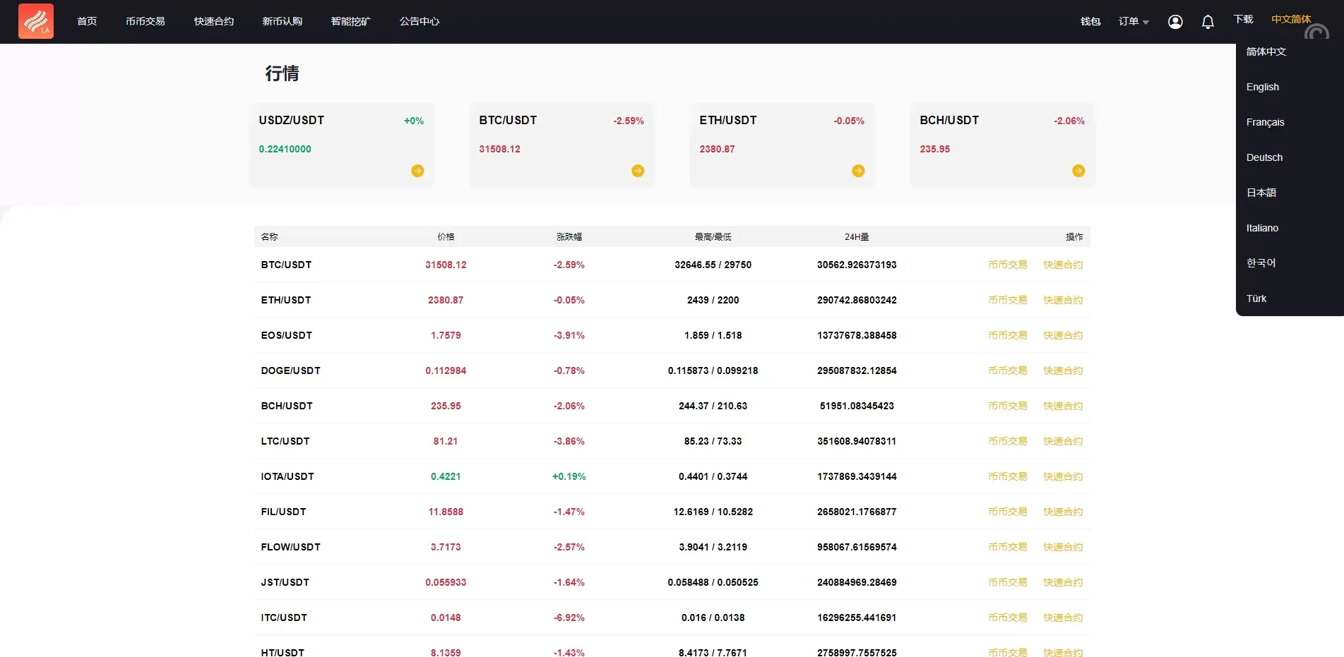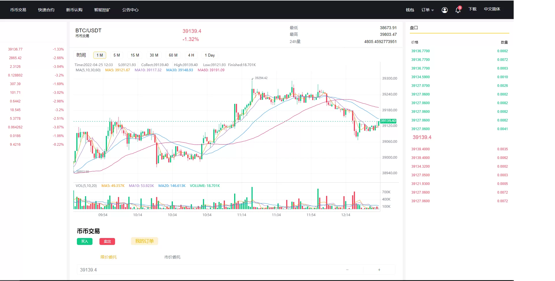- 支持多种主流币种,用户可以自由选择交易对进行买卖。