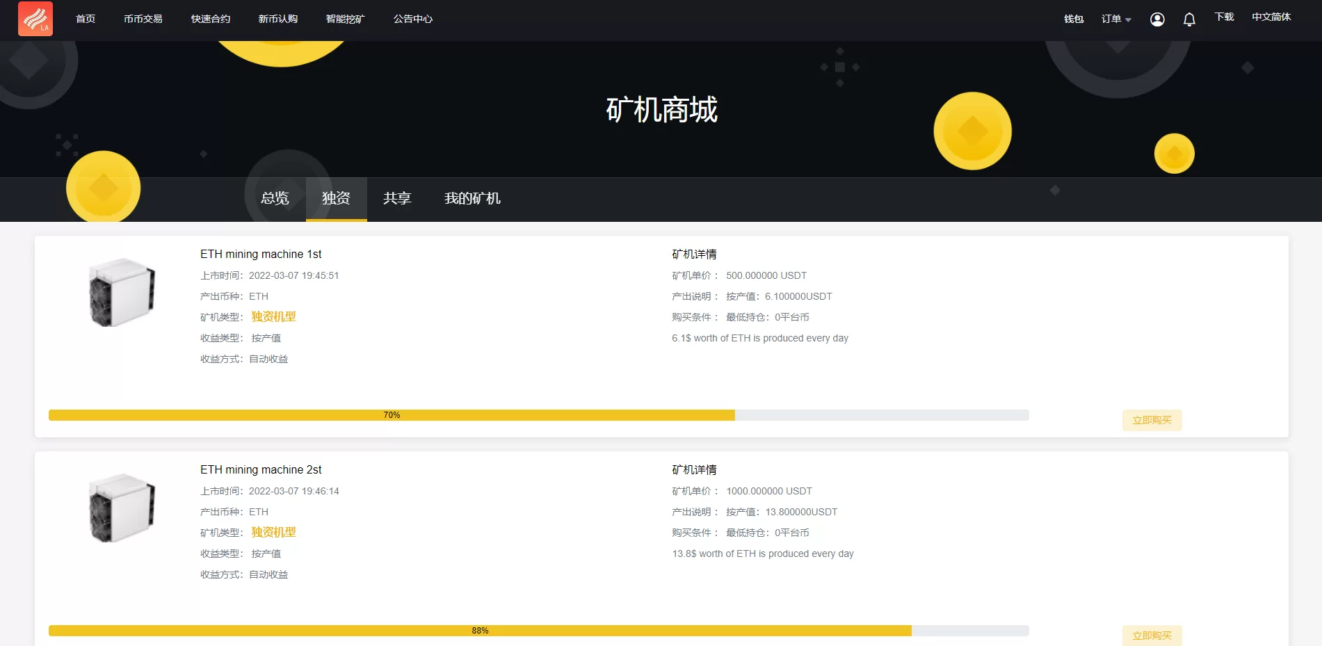 - 用户可以查看矿机的实时状态和收益,确保透明高效的矿机管理。