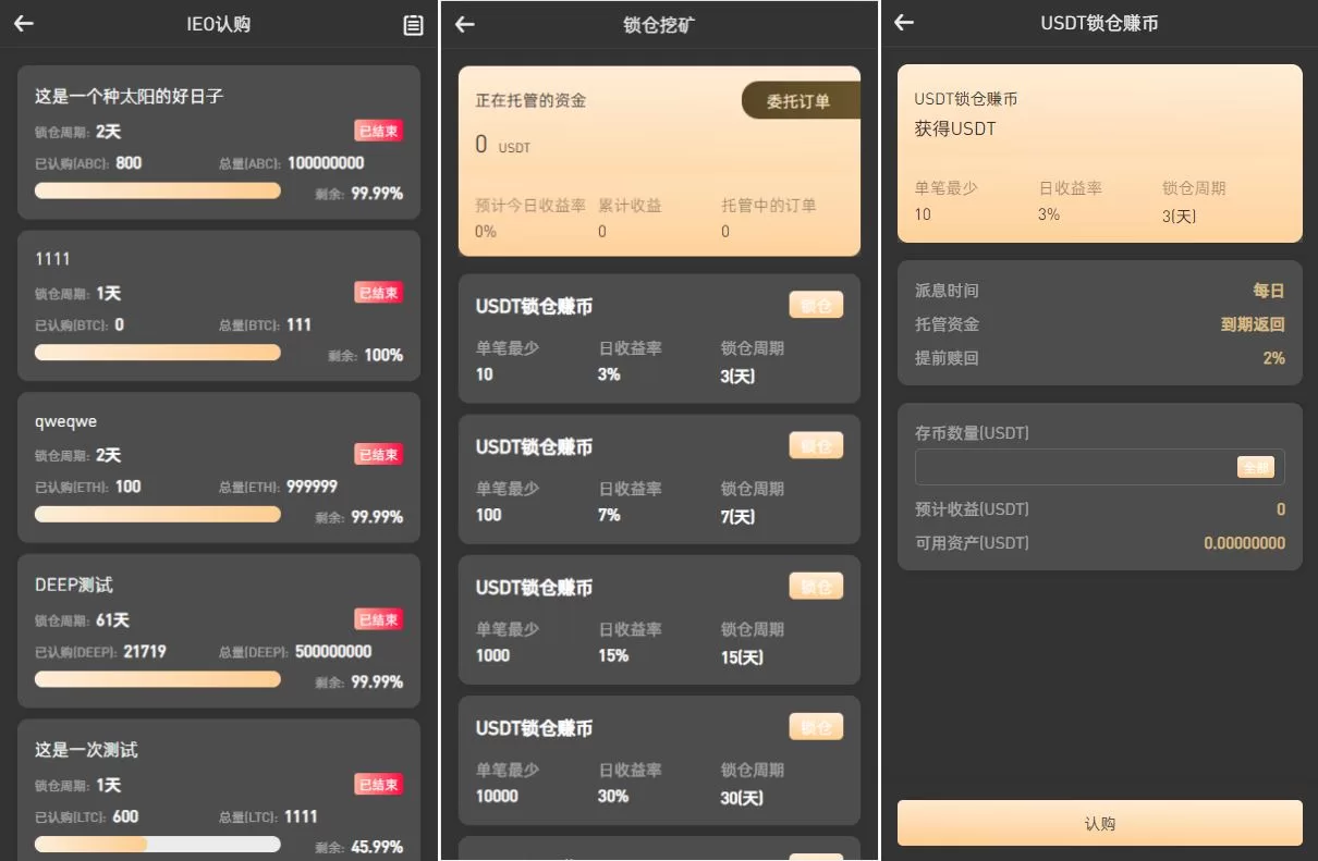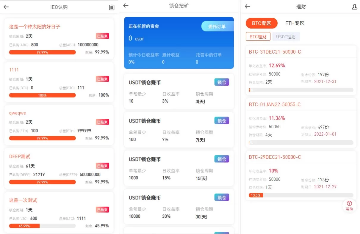 全新区块链交易所源码/IEO认购/锁仓挖矿/秒合约/币币交易/双套UI 💡 主要功能亮点: 🚀 全新开发,无瑕疵,前后端框架全面升级🔥 支持IEO认购、秒合约、币币交易、锁仓挖矿等主流交易模式🎨 双套UI界面,可自由切换,支持个性化定制📊 火币K线数据已修复,实时行情精准对接🔐 锁仓挖矿功能优化,权限到期自动调整,增强用户体验 📌 前端Vue+后端PHP全开源,代码规范,支持二次开发📌 优化撮合引擎,交易速度提升,用户体验极致流畅 全新架构,稳定流畅,更多细节等你来探索! 交易所源码 区块链源码