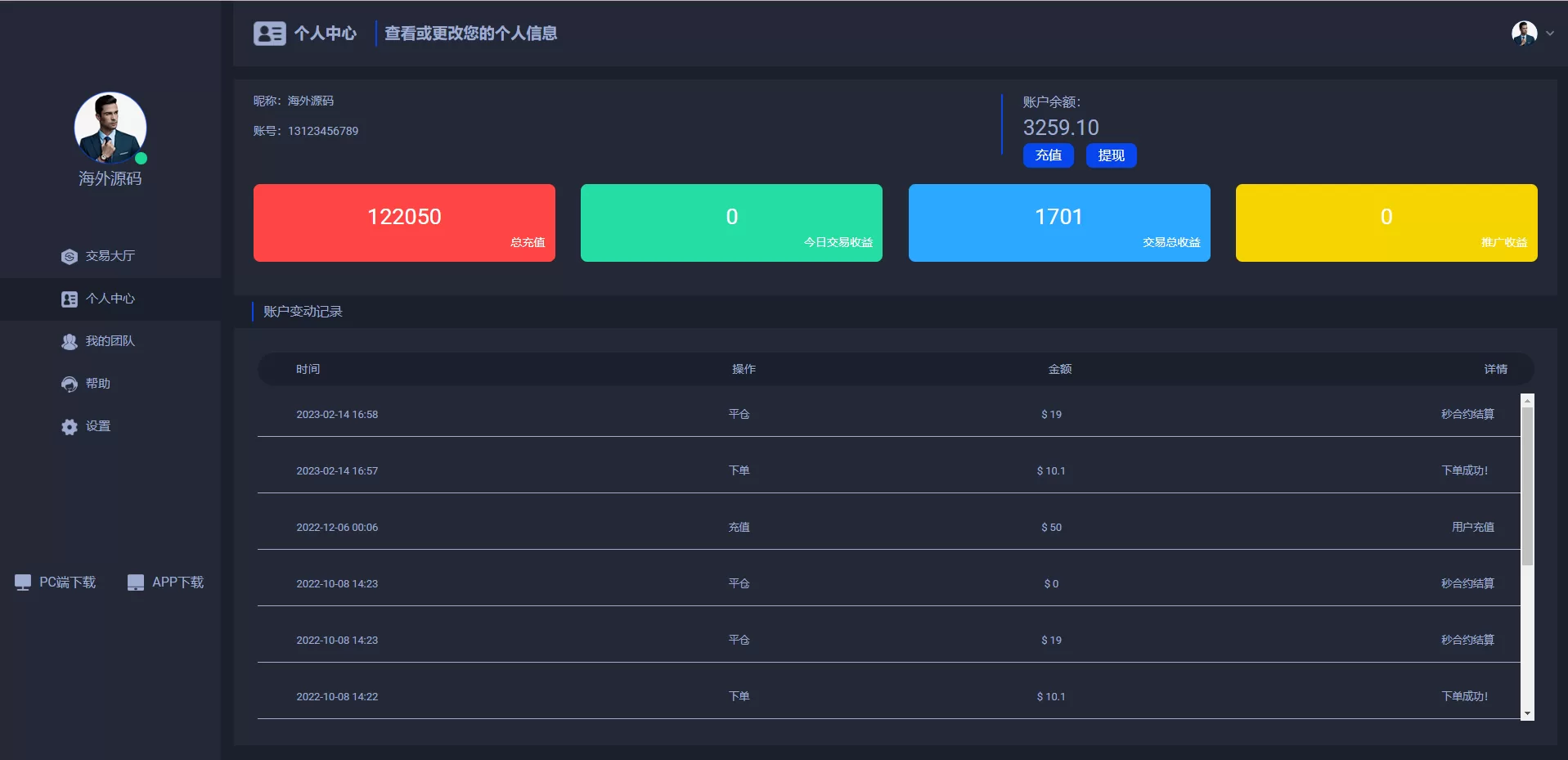 全新UI微交易系统/微盘秒合约源码/PC版微盘/虚拟币交易所源码