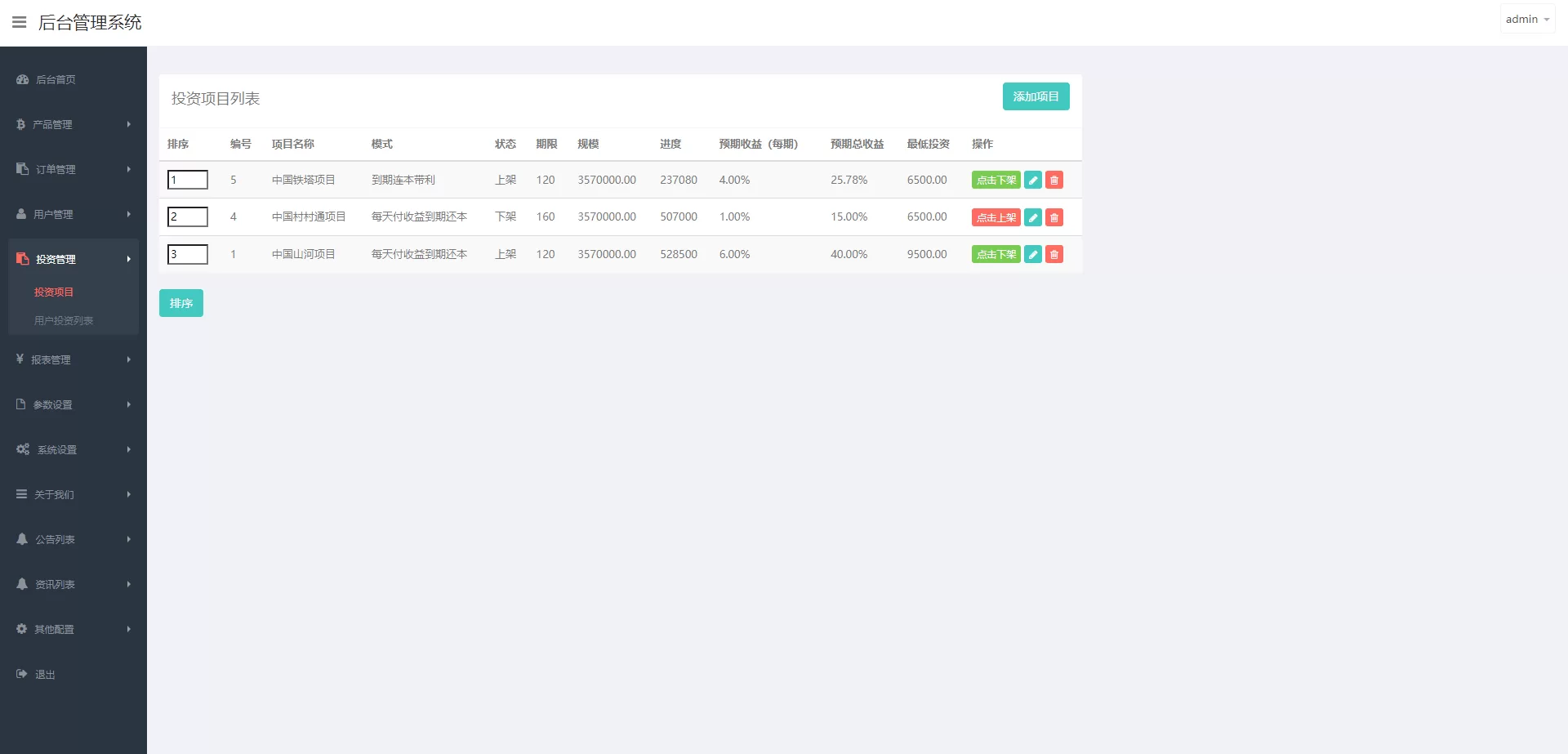 🔹 理财投资功能:系统内置 理财投资 功能,用户可以参与各种投资项目,增加收益来源。