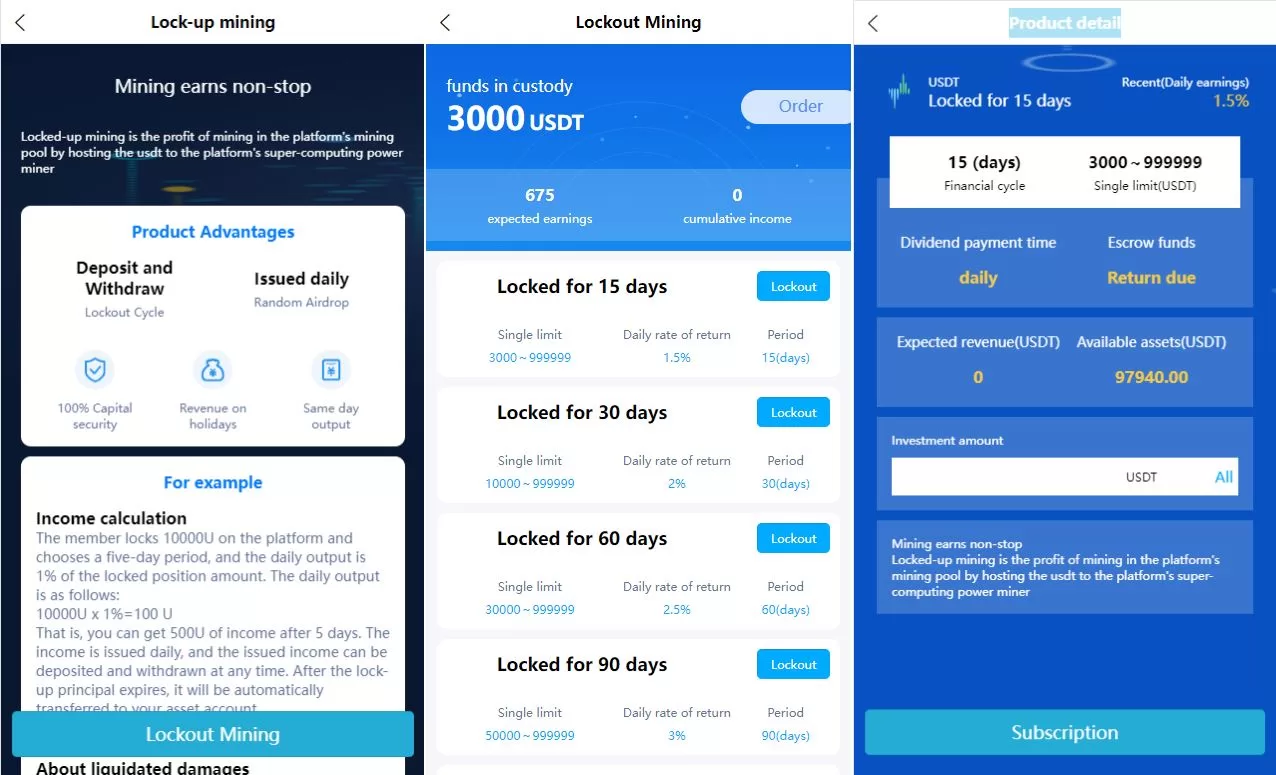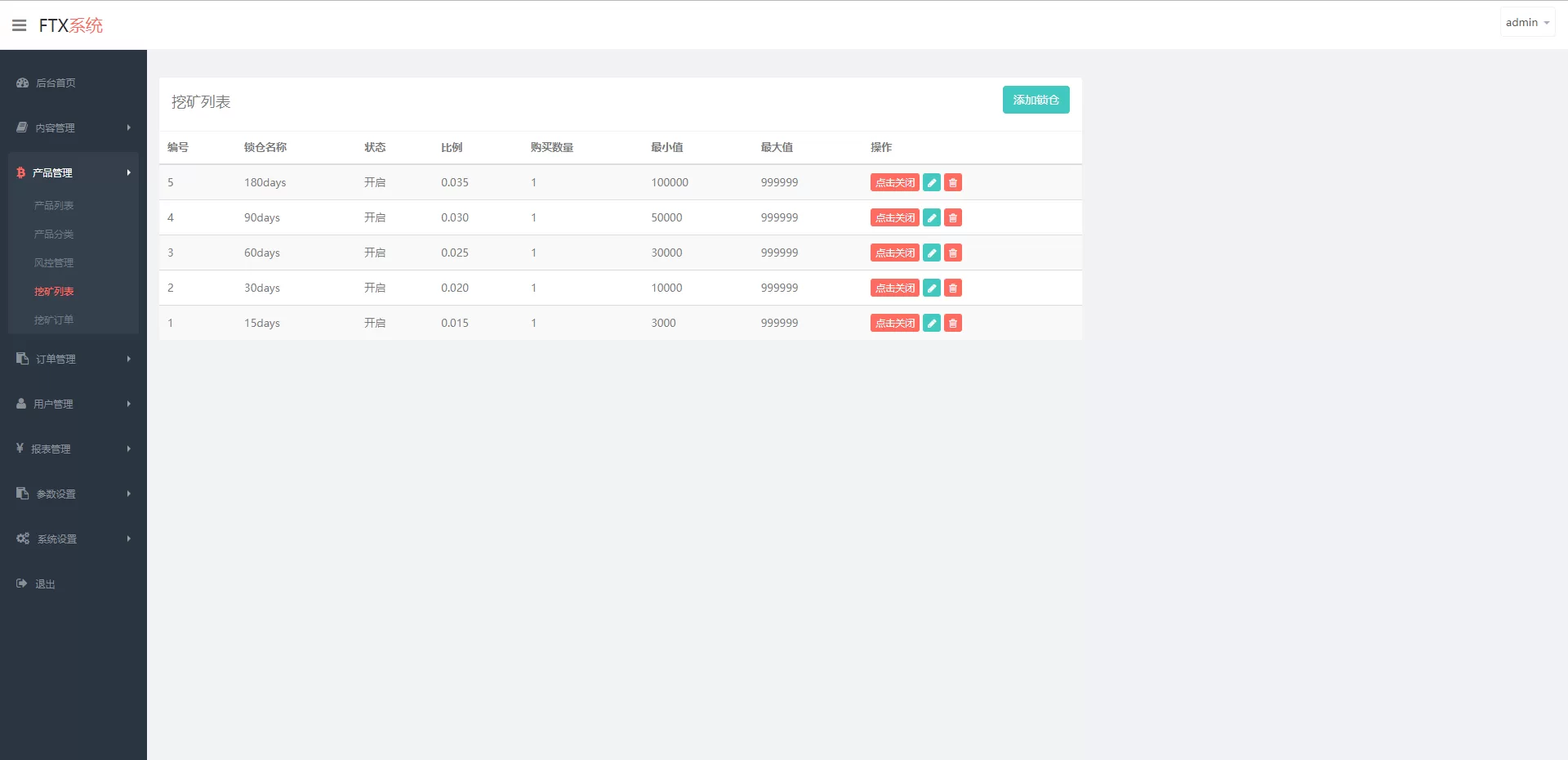 🔹 锁仓挖矿:引入了 锁仓挖矿 功能,用户通过锁仓虚拟币进行挖矿,享受长期稳定收益,增加平台的投资吸引力。