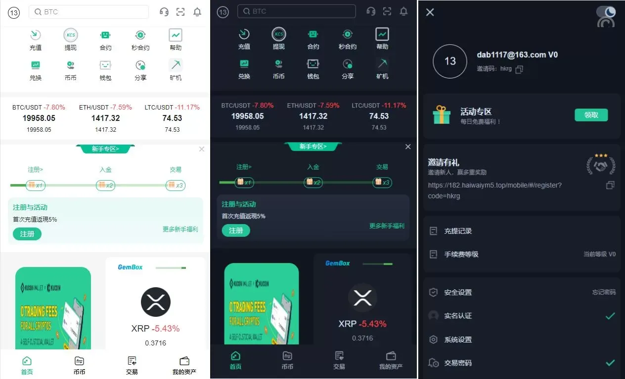 - UI精仿KuCoin:前端UI设计参考KuCoin交易所,简洁高效,用户体验优秀。