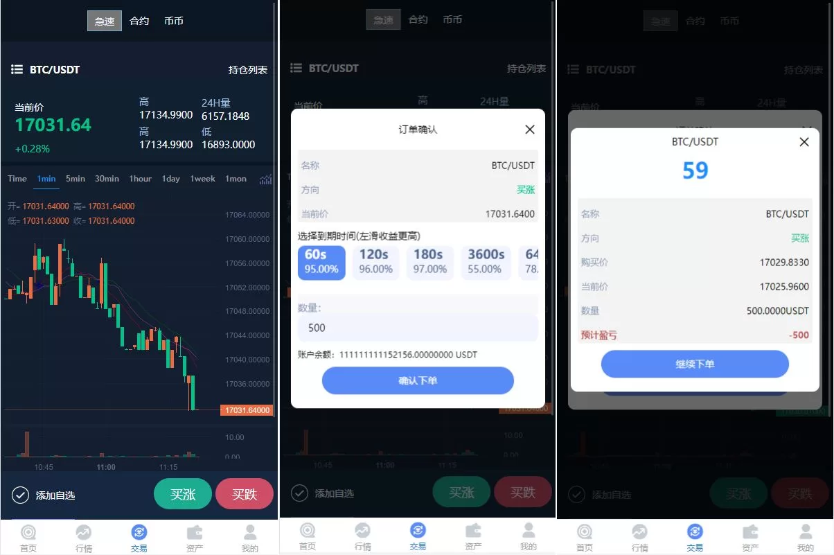 🔹 急速交易:支持秒合约交易,用户能够以极高的速度进行合约买卖,适合高频交易需求。