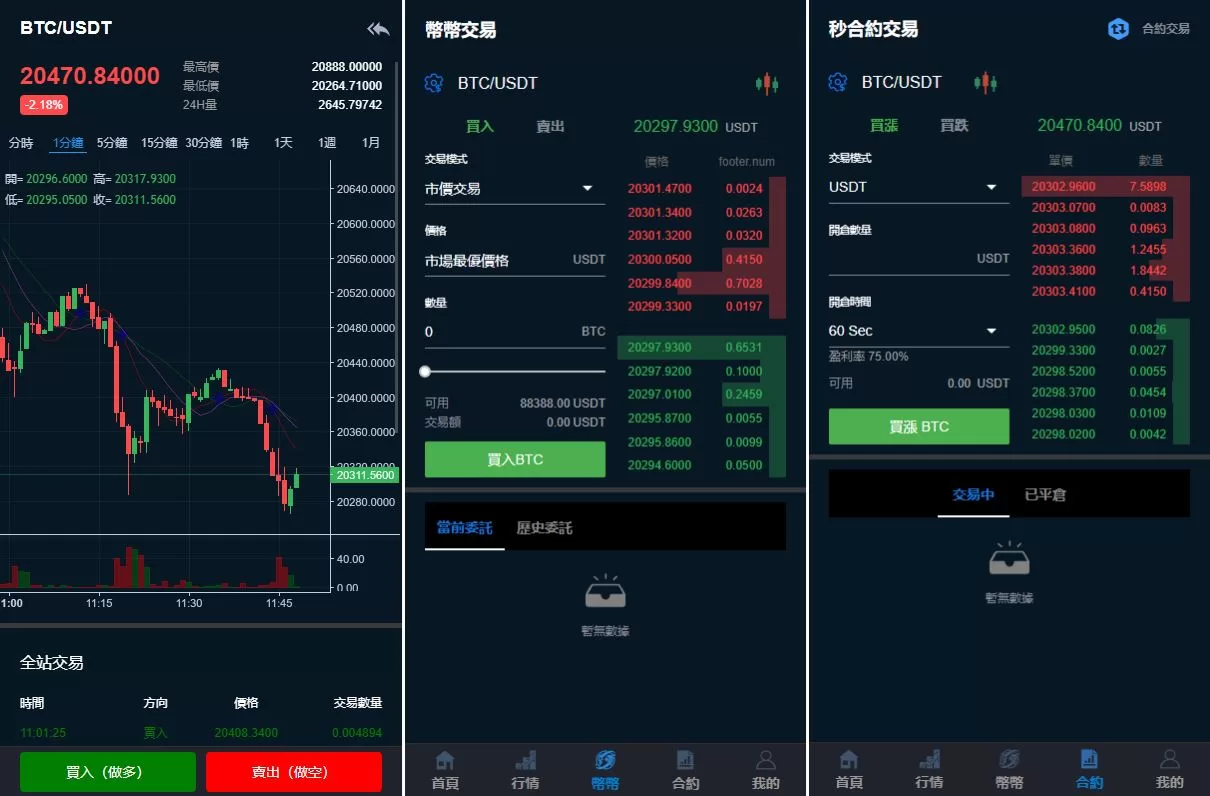 🔹 秒合约交易:秒合约交易功能,允许用户进行极速合约交易,适应市场的快速变化,提供短时间内的高频交易。