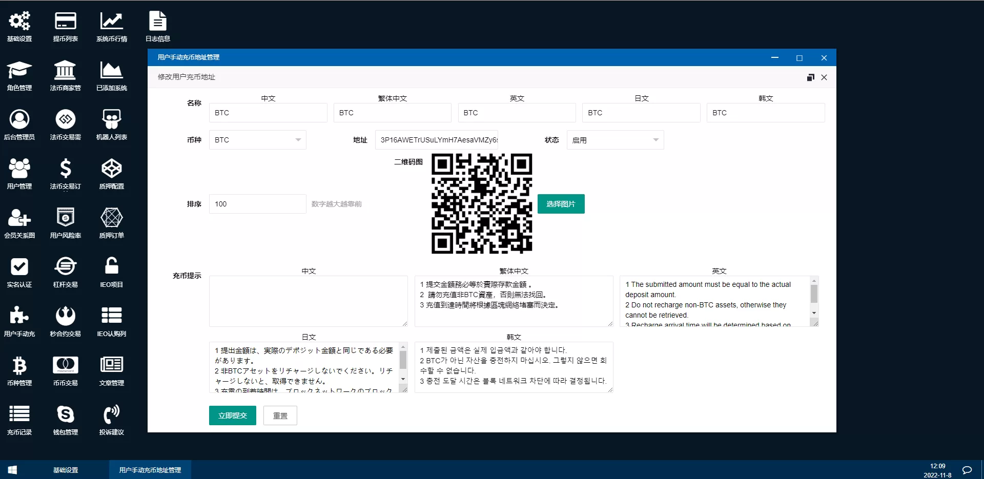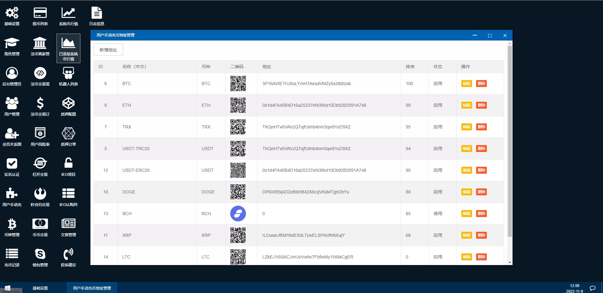 🔹 新增后台设置功能:提供充币地址设置、自动化管理功能等,方便平台运营管理和用户资金操作。
