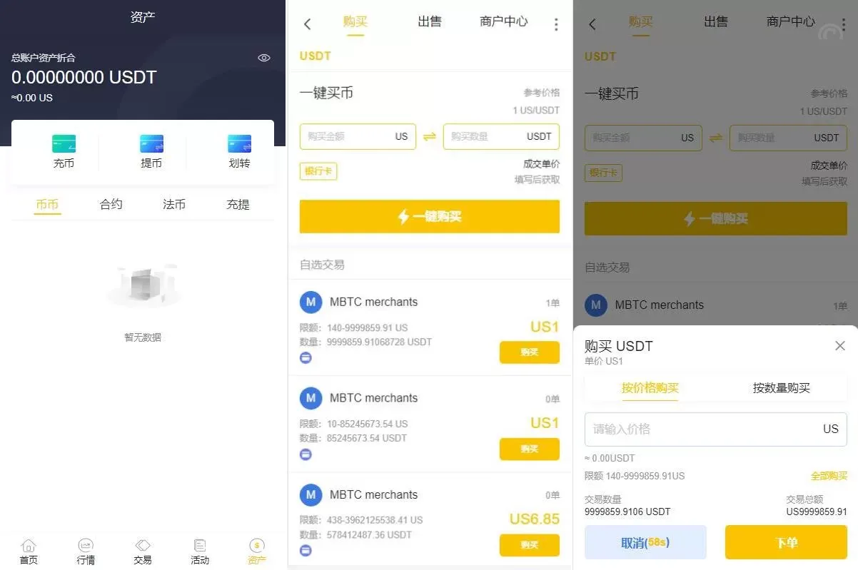 🔹 法币与币币交易:支持法币与币币交易,用户可以直接用法币进行交易,同时也支持各种币种间的交易。
