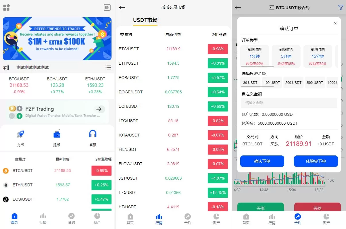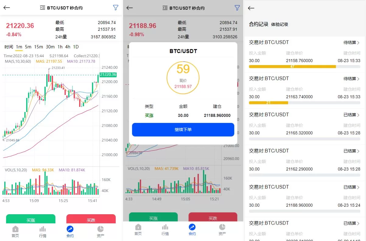 🔹 秒合约交易:系统保留了秒合约交易功能,用户可以快速进行合约交易,支持灵活的交易策略,满足高频交易需求。