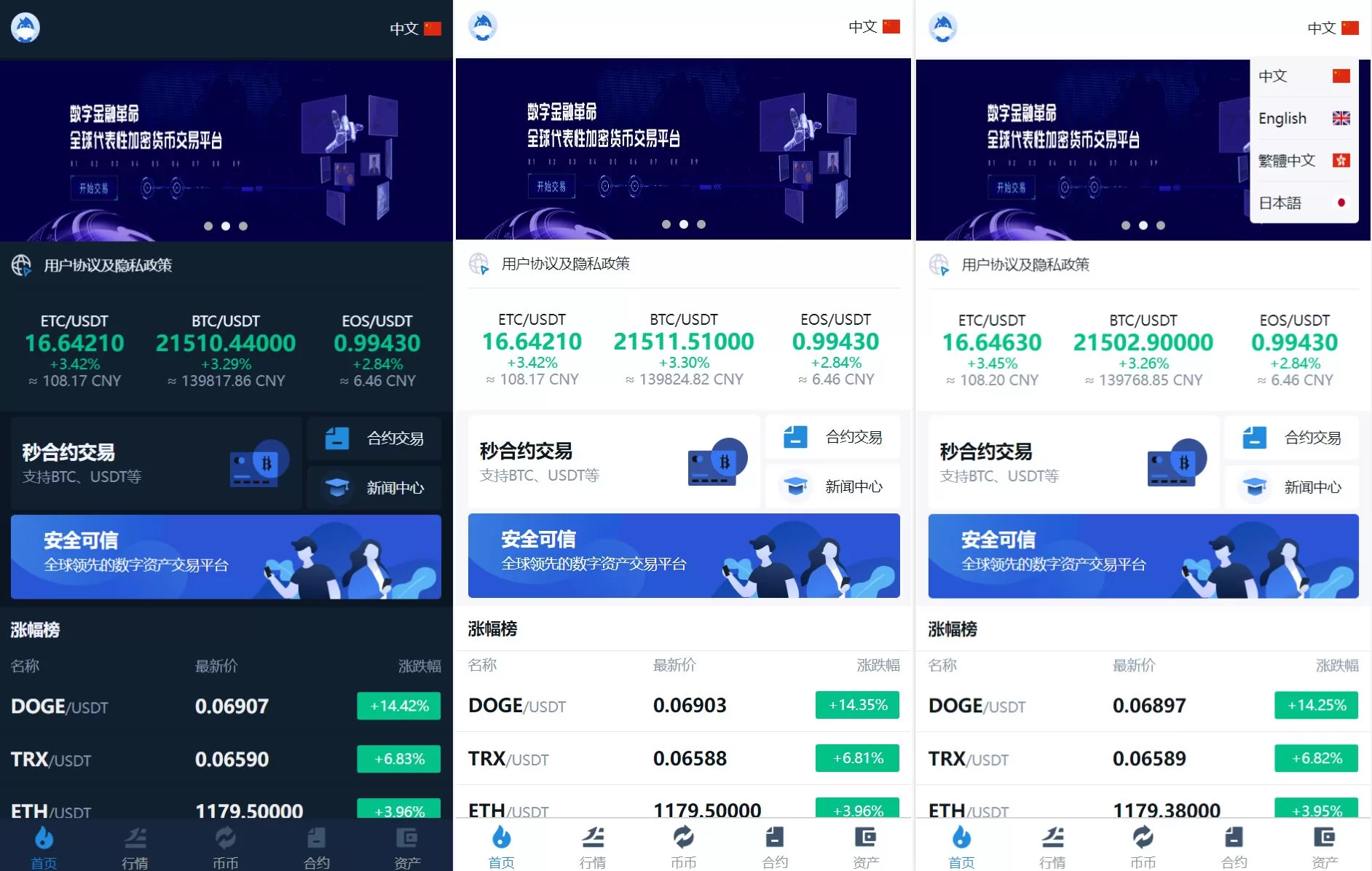 多國語言交易所系统/币币交易/秒合约交易所/PC端VUE/手机端uniapp源码