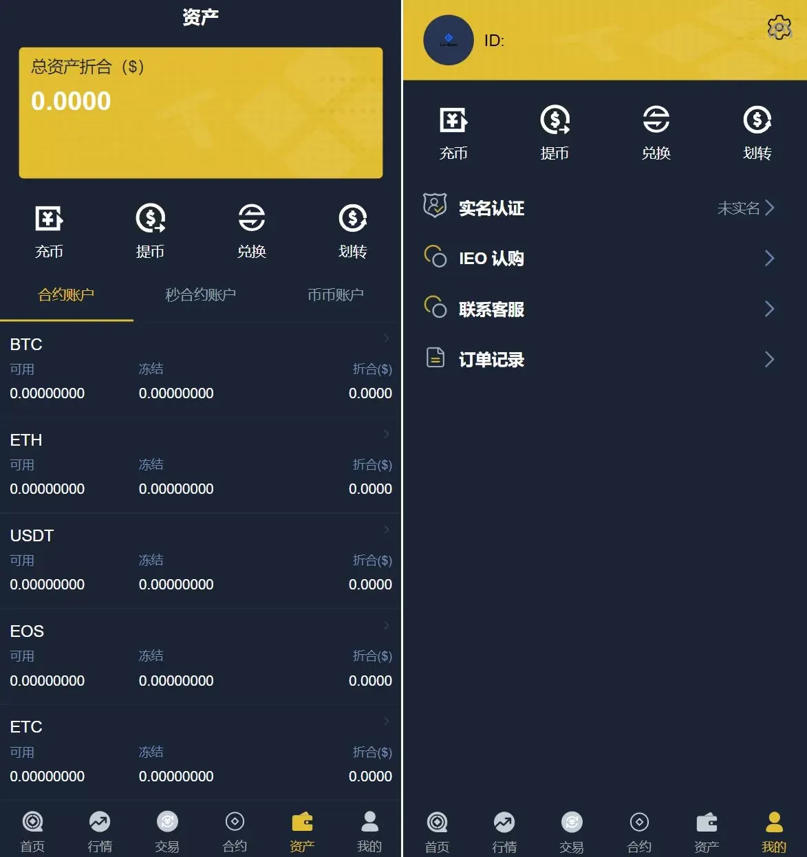 🔹 币币秒合约交易:支持多种数字货币对的快速交易和合约交易功能