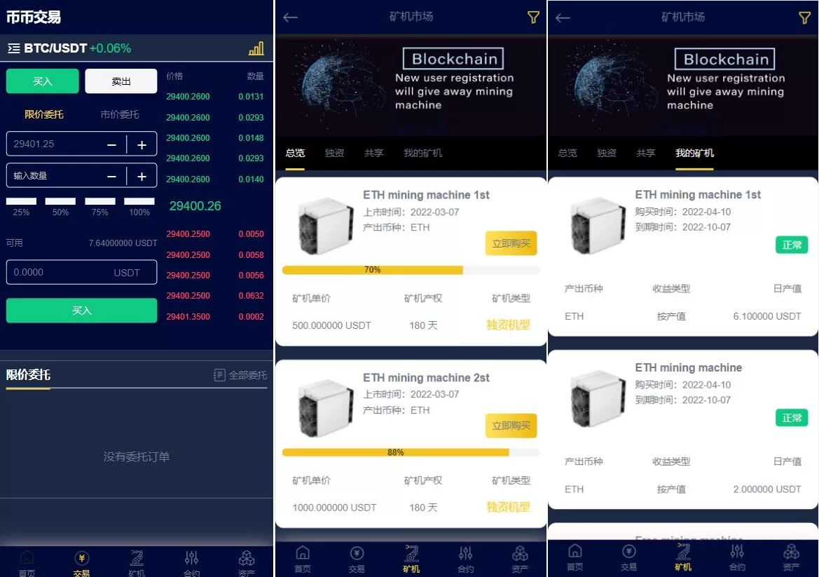 二开优化版区块链交易所源码/时间盘矿机系统/智能挖矿/币币合约交易