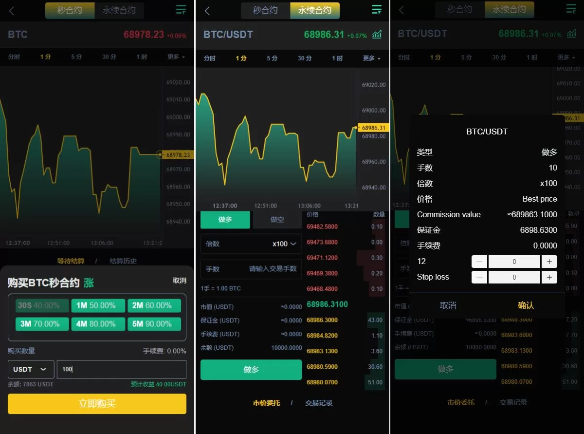 🔹 秒合约与永续合约:提供 秒合约交易 和 永续合约交易 功能,适应快速变动的市场,满足用户的交易需求。